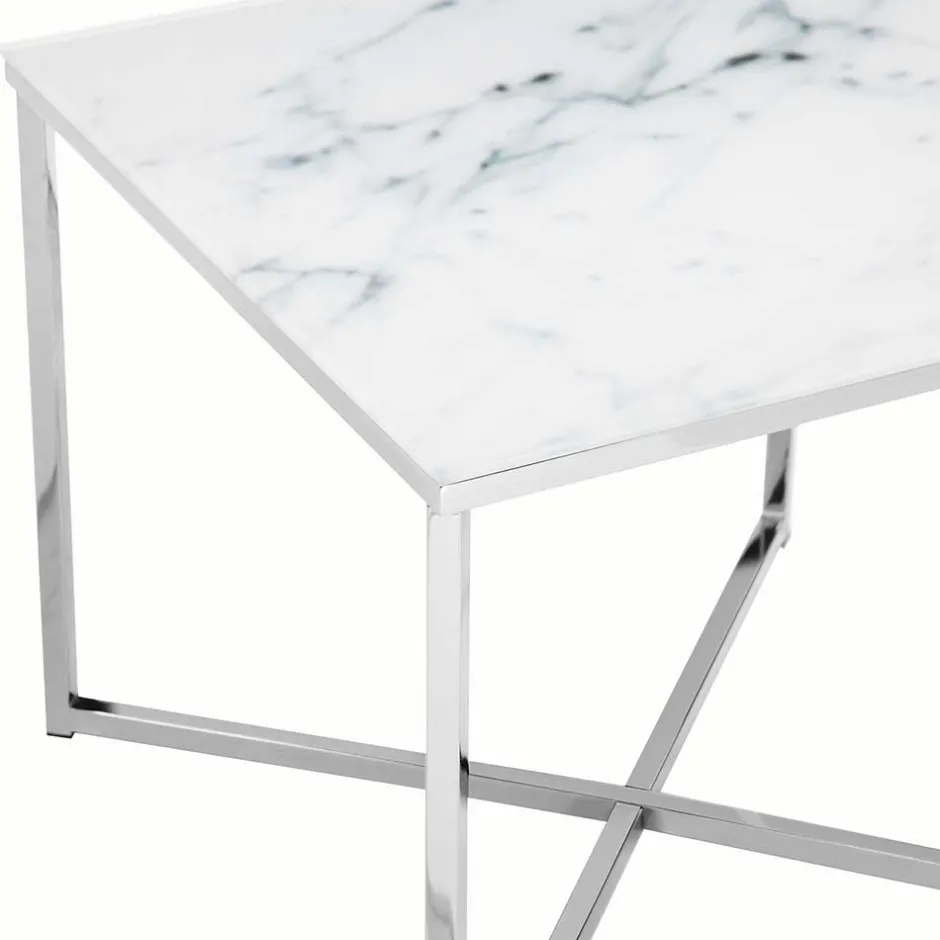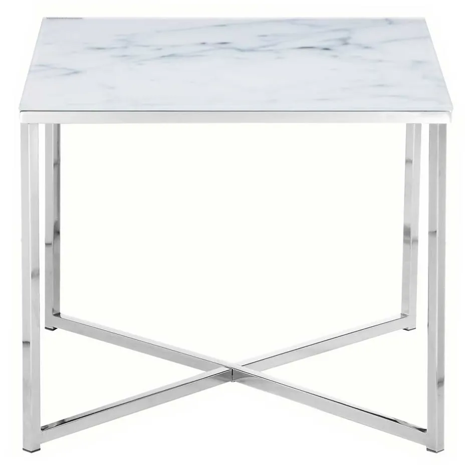 - Ansprechender Beistelltisch in Weiß, Hellgrau und Chromfarben
