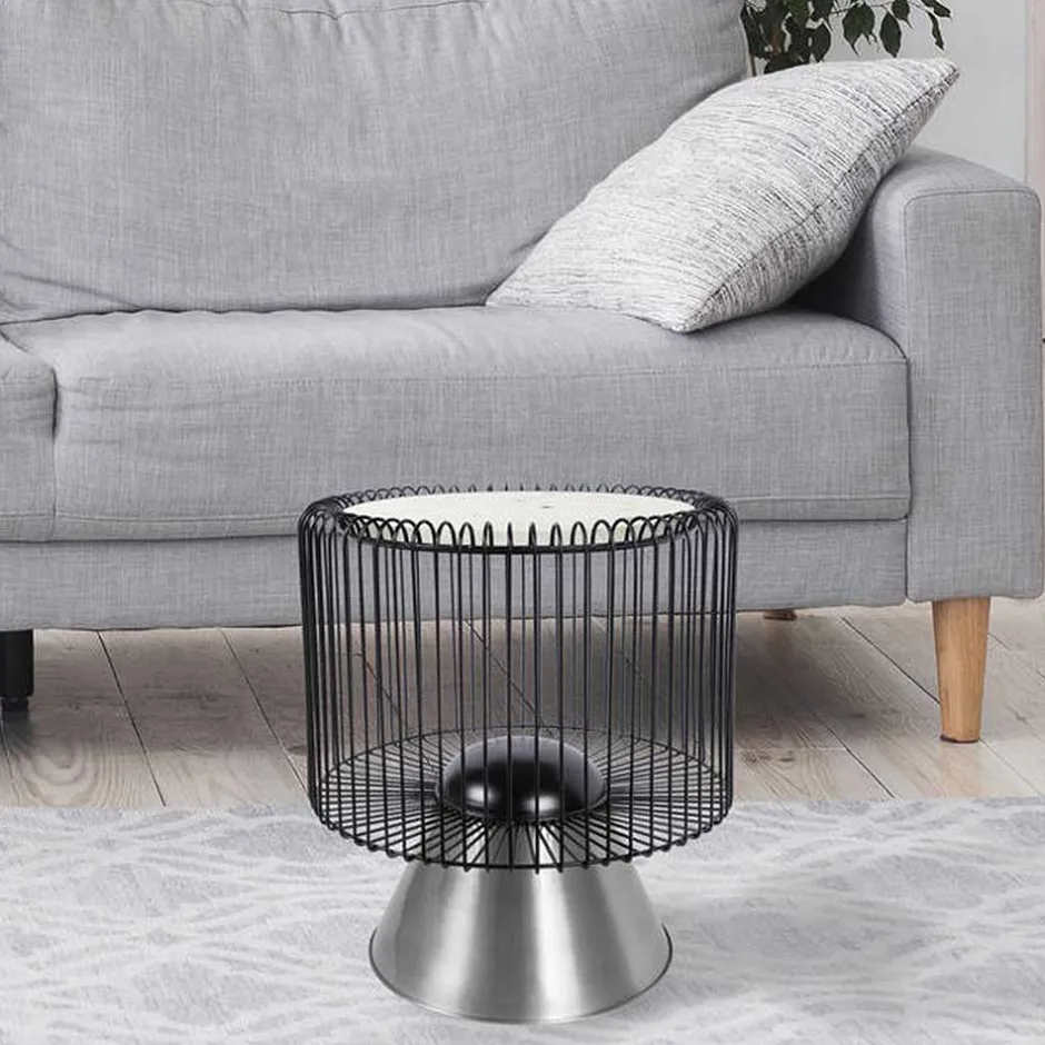 - Dekoratives Gestell mit silberfarbigem Sockel und schwarzem Drahtkorpus