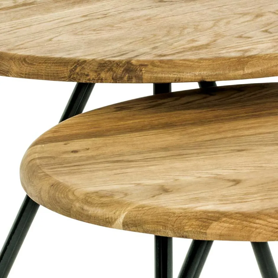 - Dezente Beistelltische in Eichefarben und Schwarz