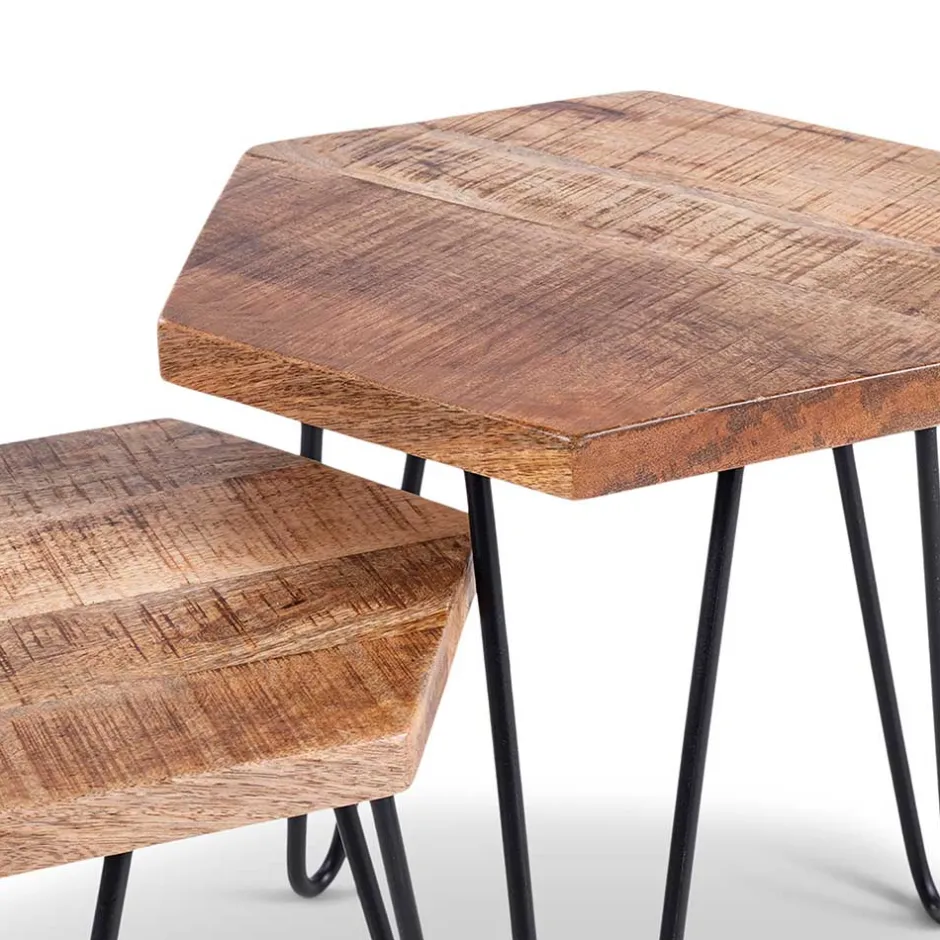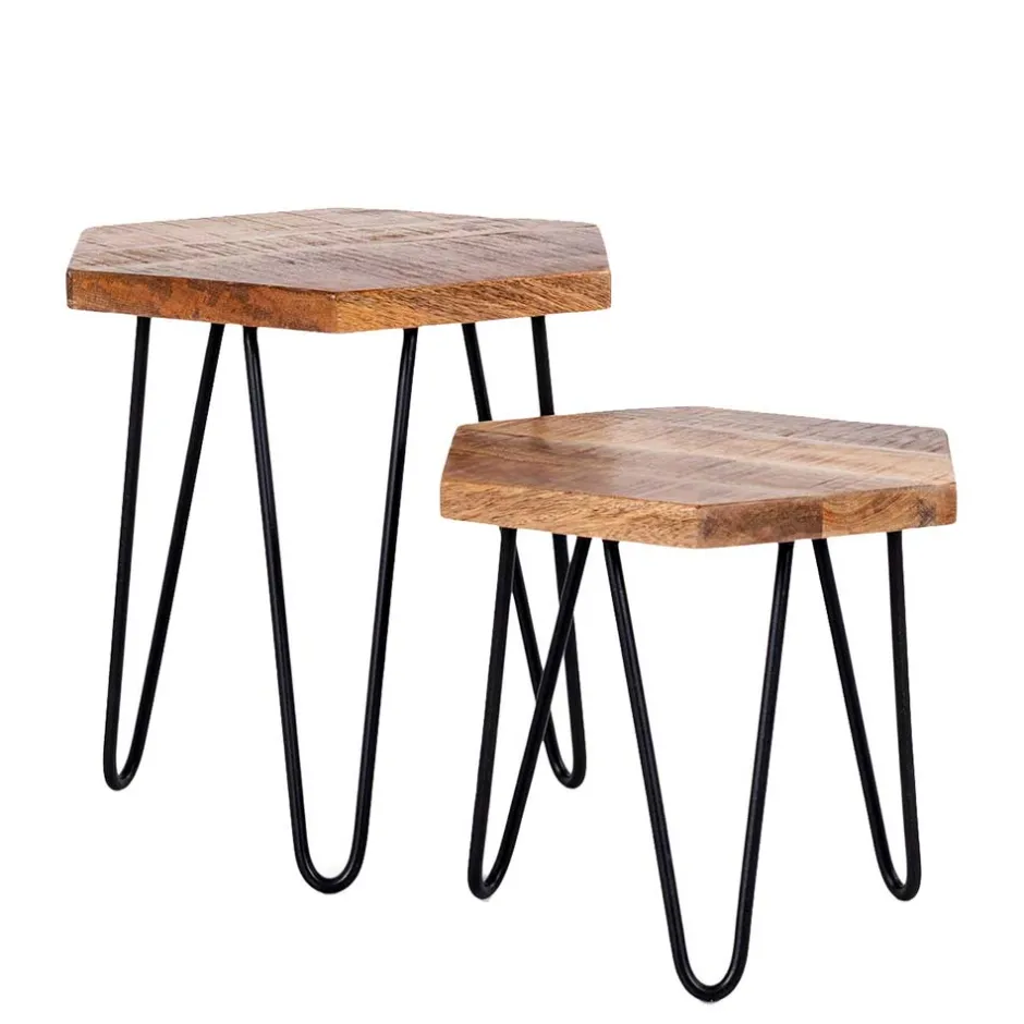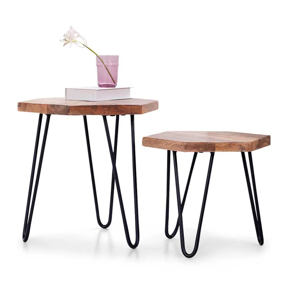 - Junges Beistelltisch Set in Mangoholz und Schwarz