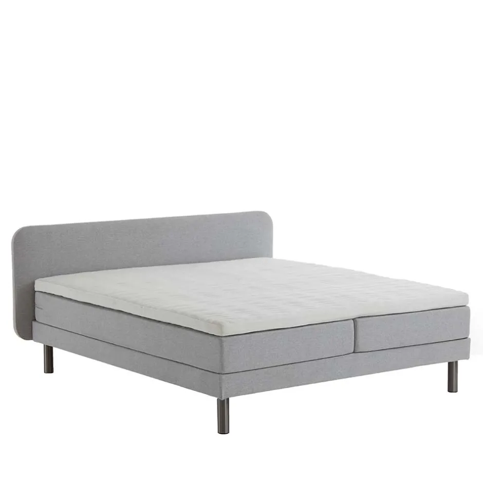 - Attraktives Boxspringbett in Hellgrau und Chromfarben