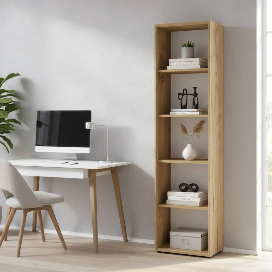 - Hohes Aktenregal in Wildeichefarben und Weiß