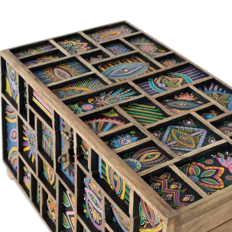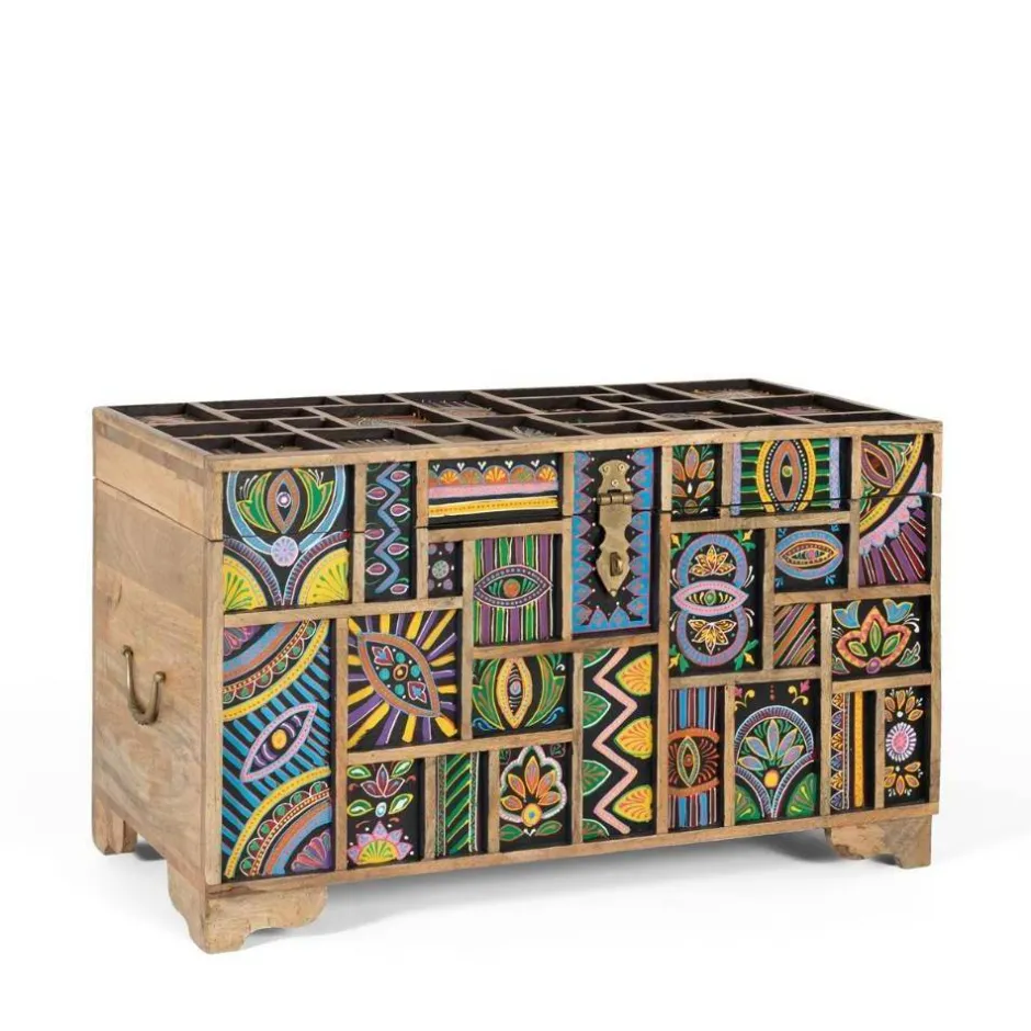 - Auffallende Truhe in Bunt und Mangoholz Naturfarben