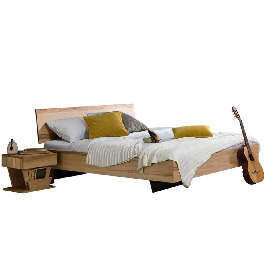- Modernes Bett in Kernbuchefarben mit Nachtkommoden