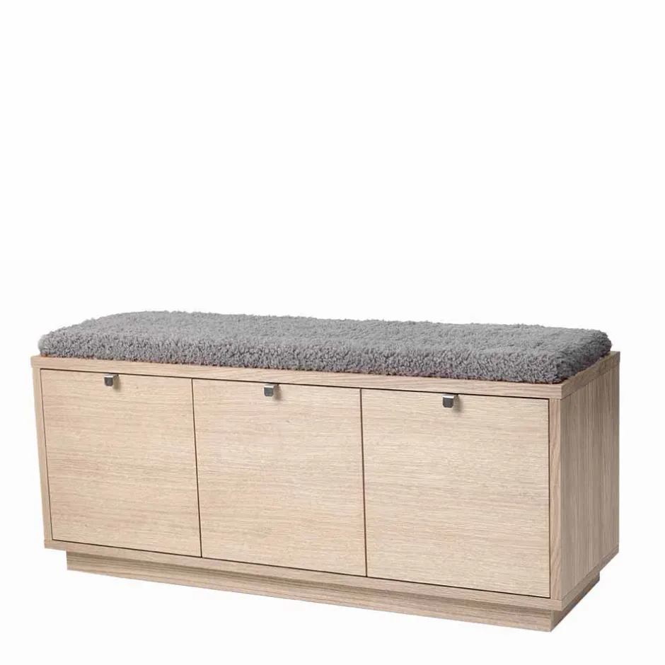 - Schlichte Garderobenbank in Eiche White Wash und Grau