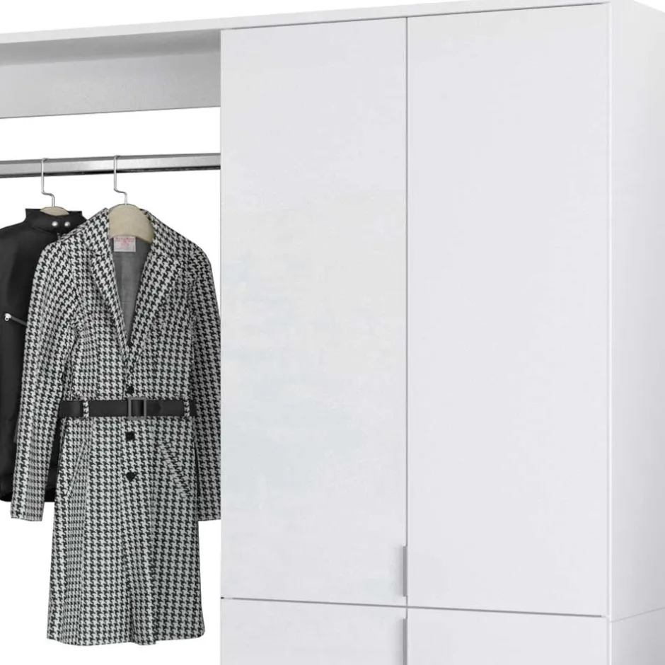 - Vier Türen, innen sieben Einlegeböden und eine ausziehbare Kleiderstange