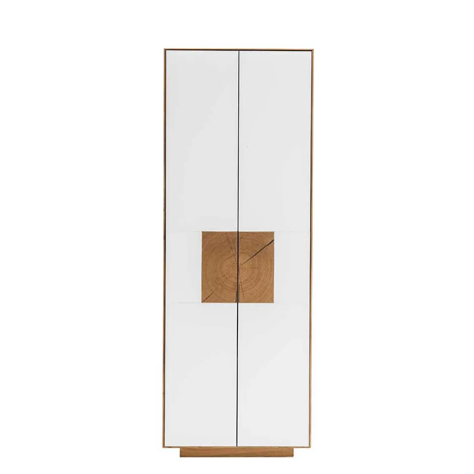 - Türen aus solider MDF mit satinierter Glasfront in Weiß und einer unikaten Applikation aus Hirnholz