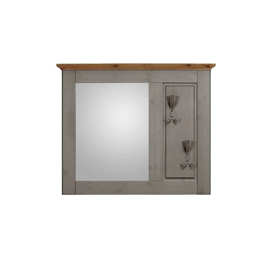 - Formschöner Garderobenspiegel in Grau und Kiefer laugenfarbig