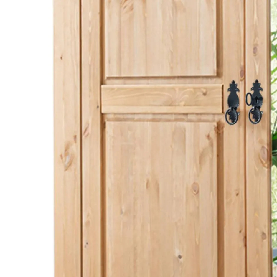- Hinter jeder Doppeltür befindet sich eine Kleiderstange und ein Einlegeboden