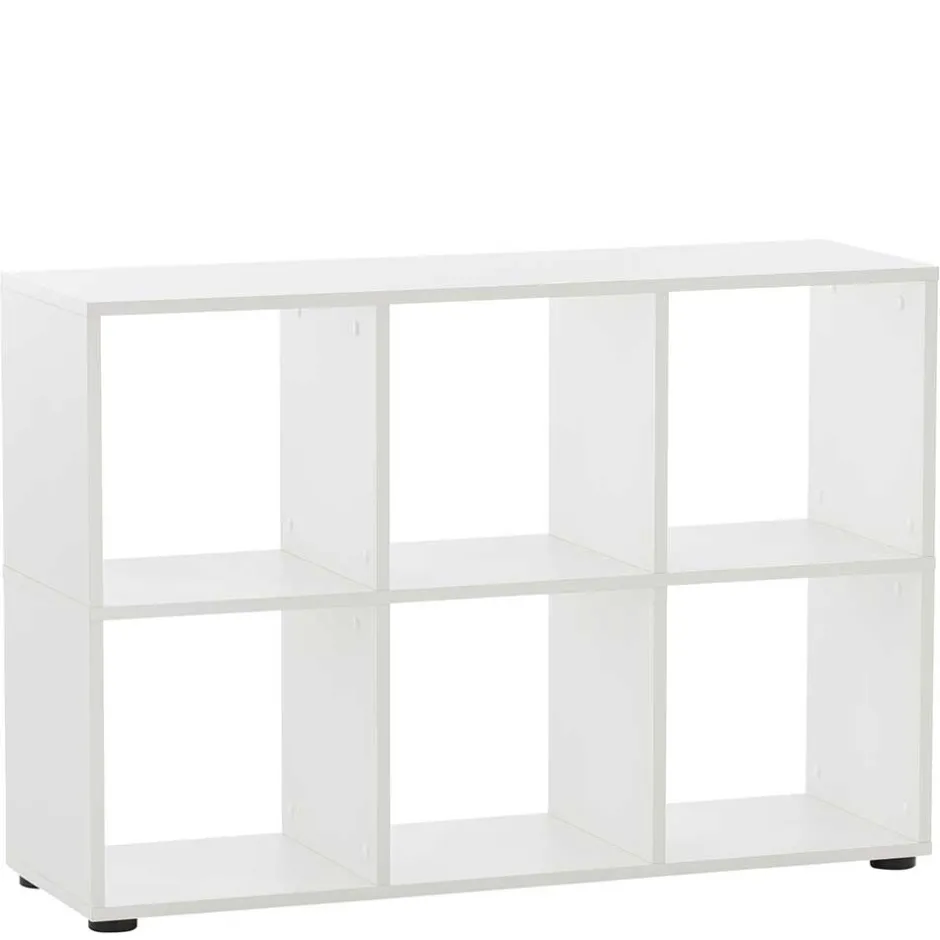 - Durch das Regal ergeben sich sechs Ablagen, Fächer von beiden Seiten offen