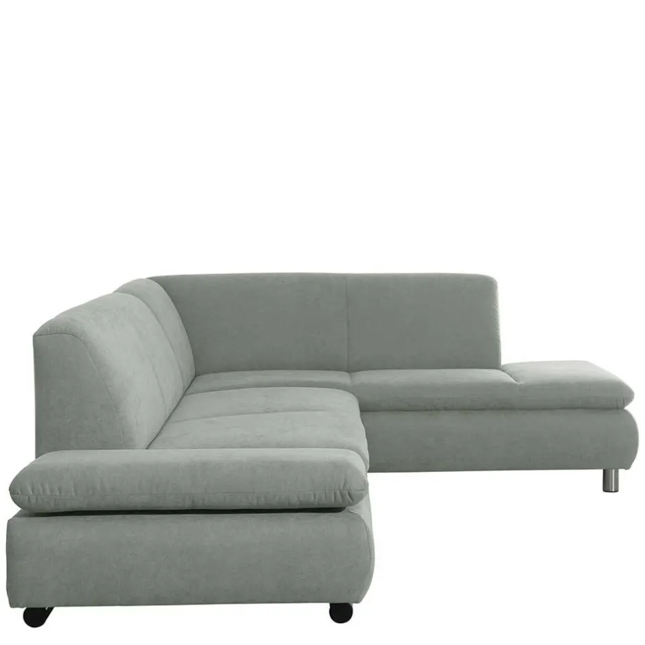- Schickes Ecksofa in Hellgrün und Chromfarben