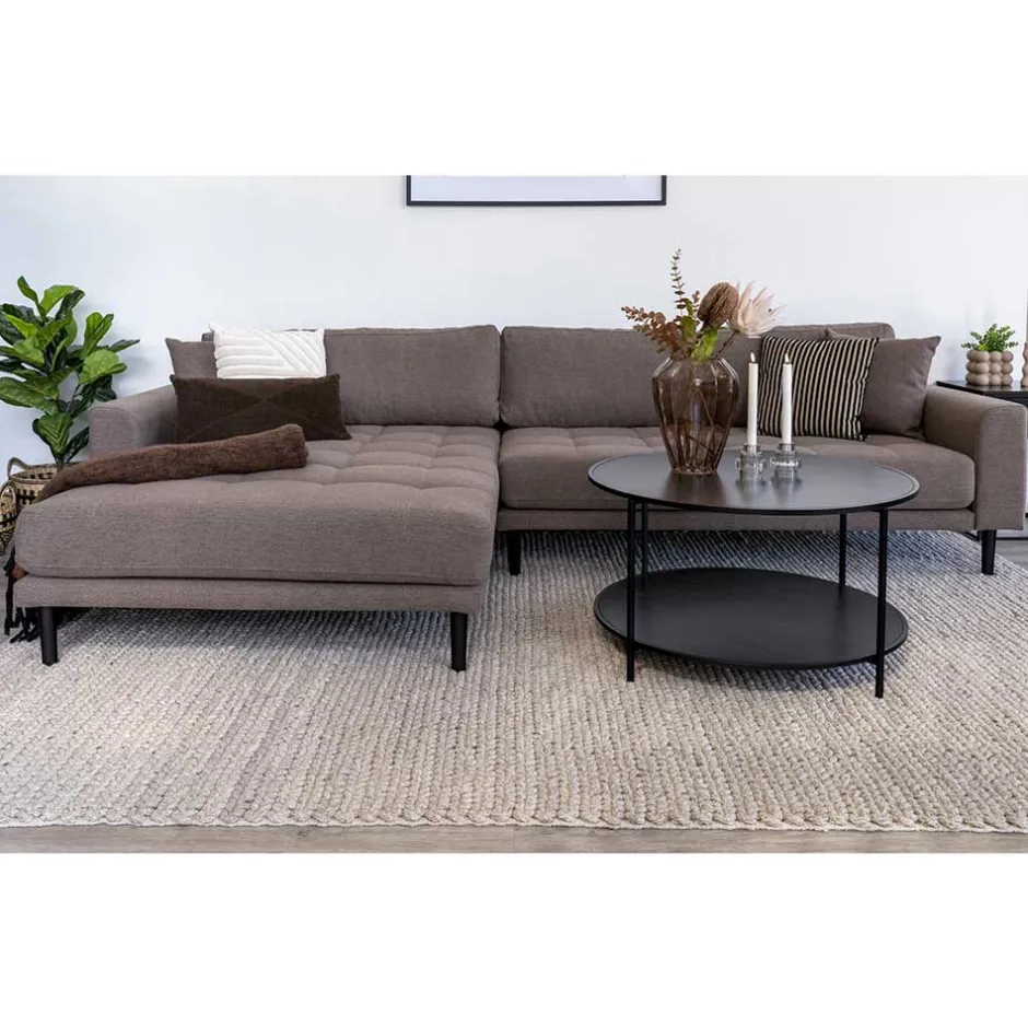 - Die Couch in Braun und Schwarz ist ein echter Hingucker und passt perfekt zum modernen Interieur