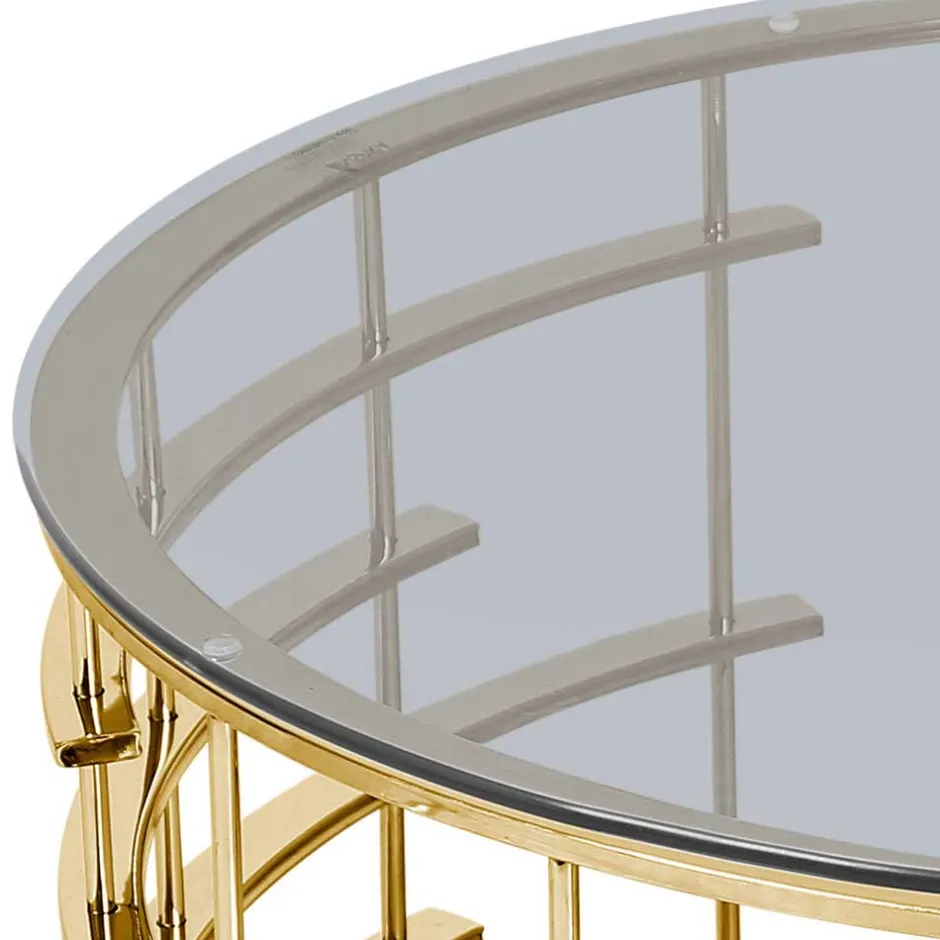 - Eleganter Couchtisch in Grau transparent und Goldfarben