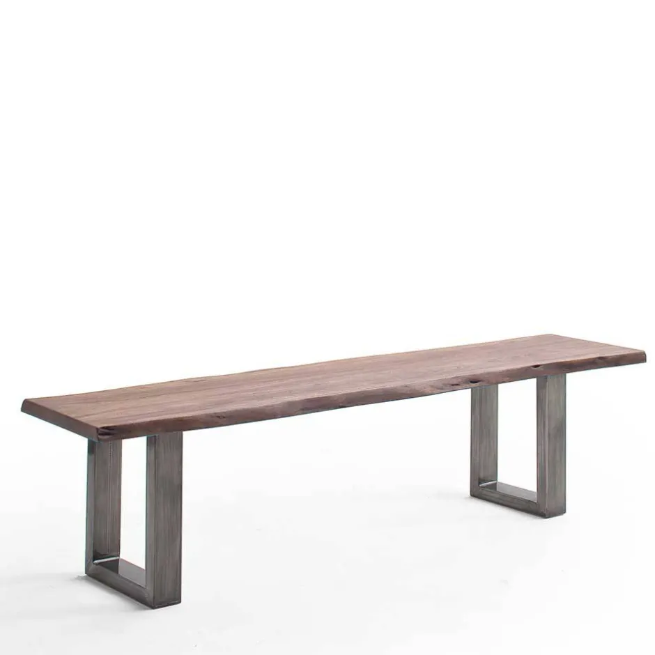 - Rustikale Esstisch Bank in Walnuss- und Altsilberfarben