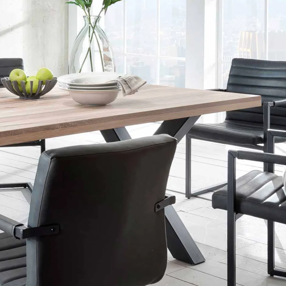 - Exklusiver Esstisch in Eiche gekälkt und Schwarz
