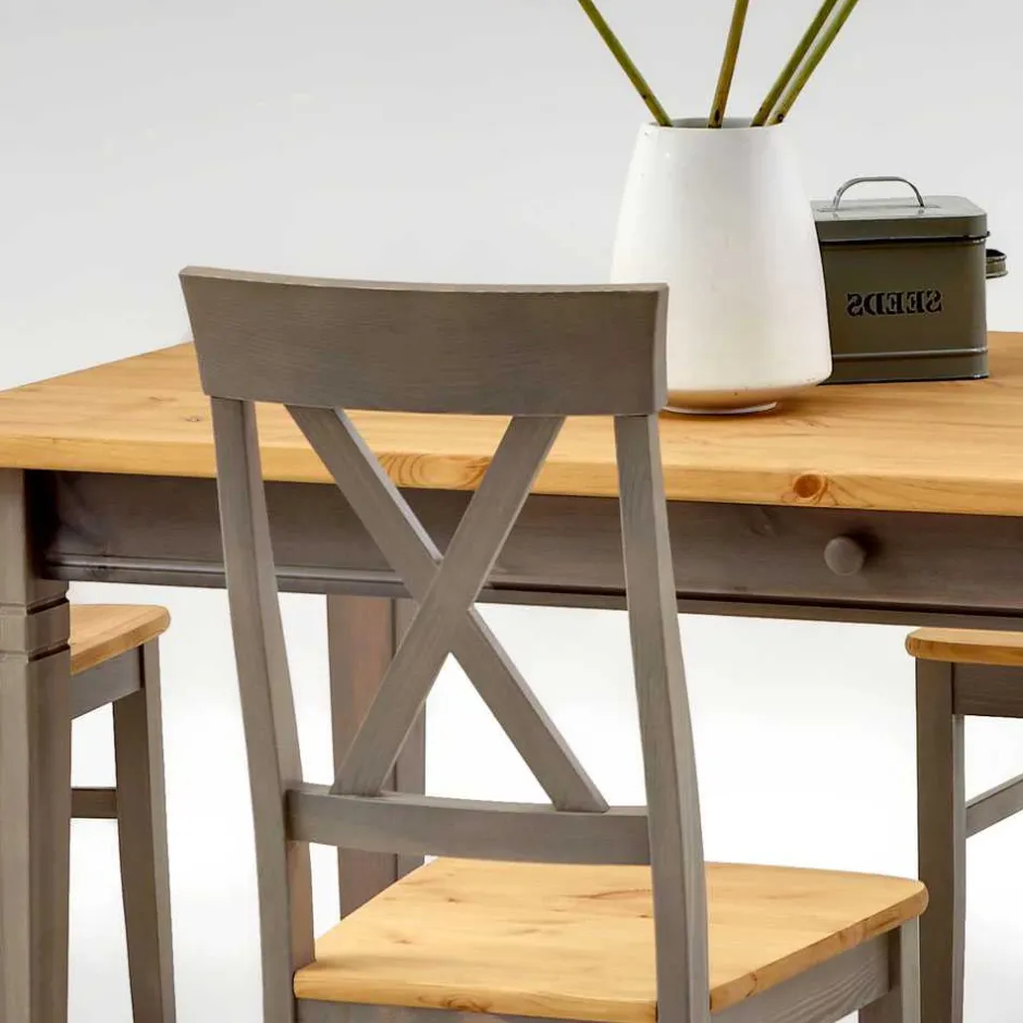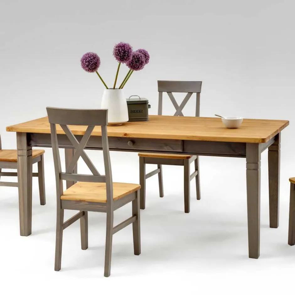 - Schicker Esstisch in Grau und Kiefer laugenfarben