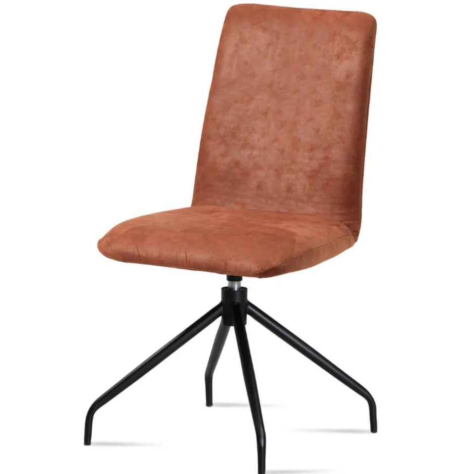 - Schlichte Stühle in Cognacbraun und Schwarz