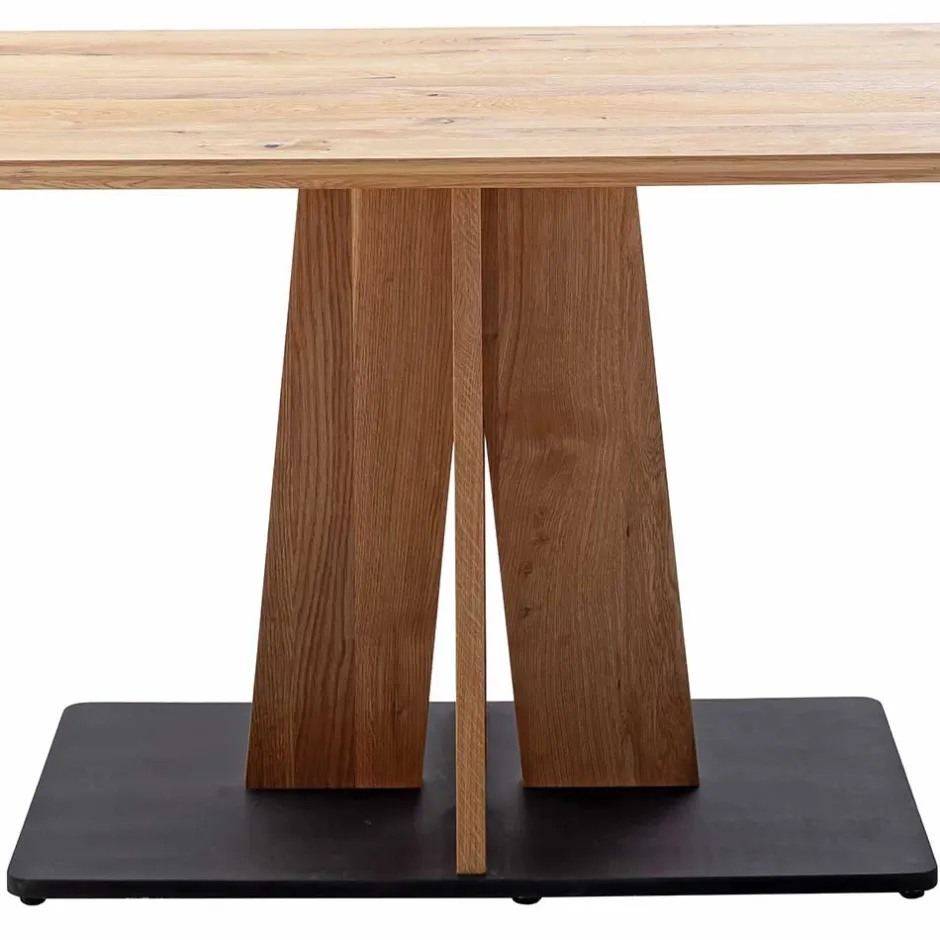 - Kreuzförmiges Säulengestell aus Wildeiche mit standsicherer Bodenplatte aus schwarz lackierter MDF