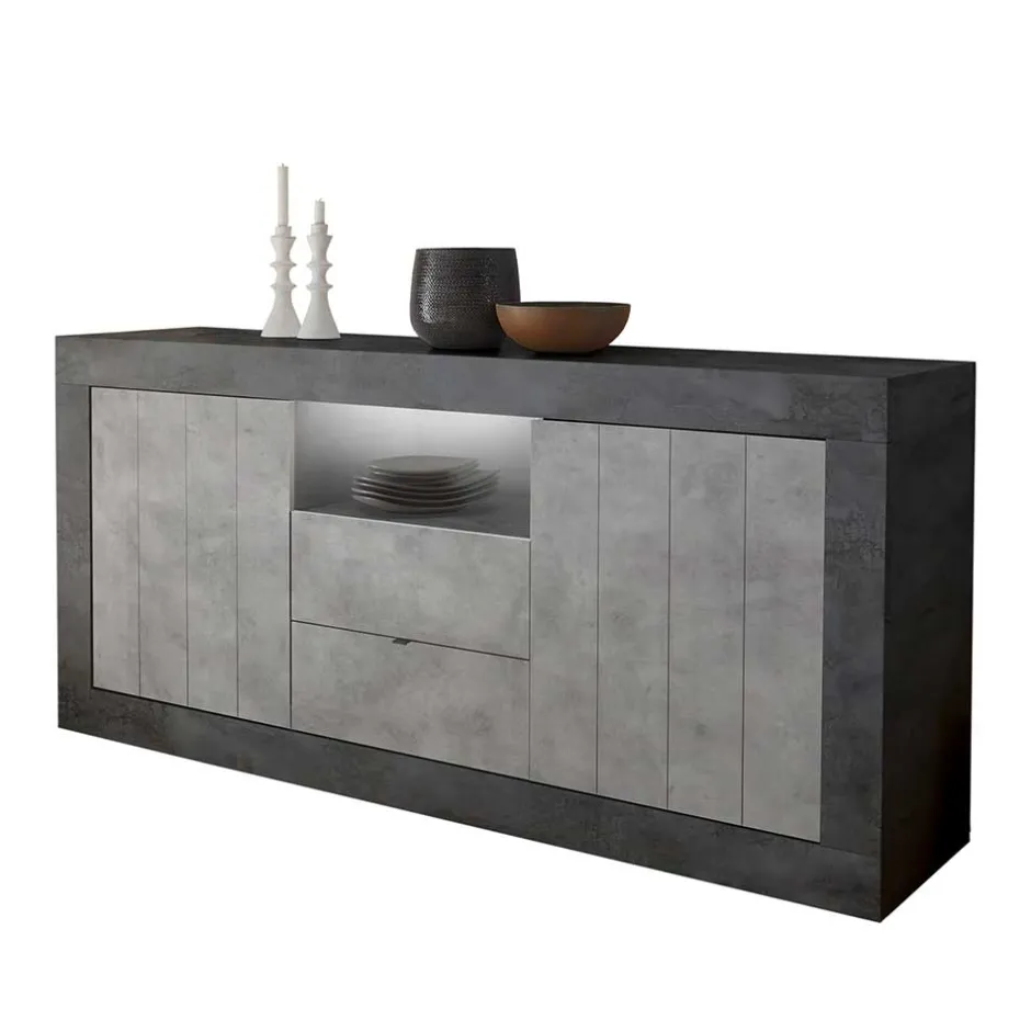 - Pflegeleichte, melaminbeschichtete Oberfläche, Korpus in dunkelgrauer Stein-, Rest in Betonoptik