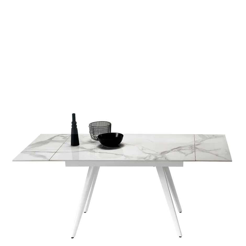 - Ausgezeichneter Esstisch in Weiß und Hellgrau marmoriert