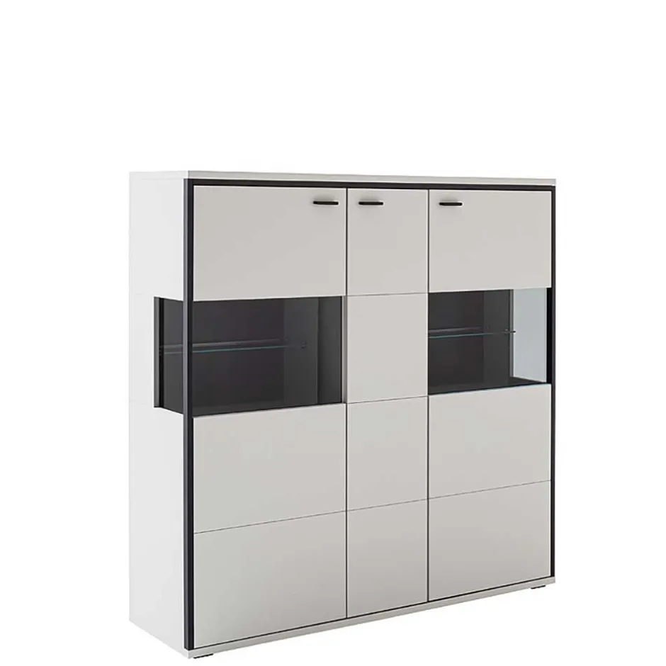 - Trendstarke Vitrine in Weiß und Schwarzgrau