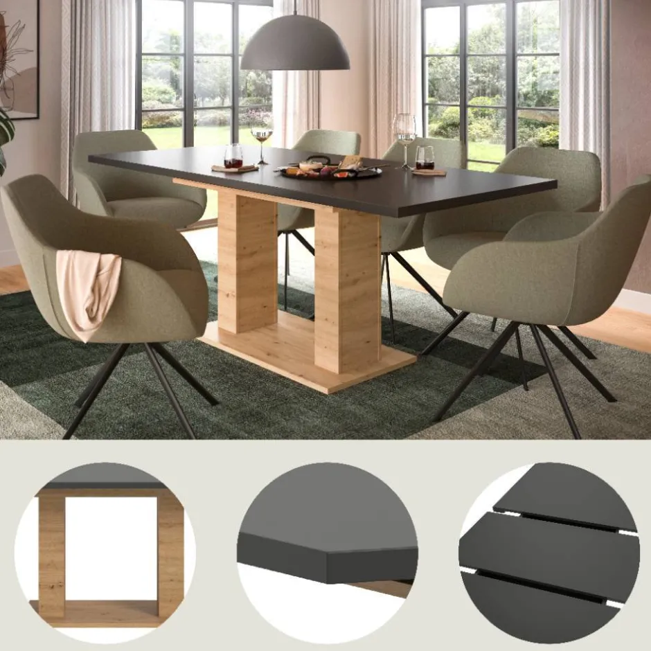 - Ansprechender Esstisch in Grau und Wildeiche Holzoptik