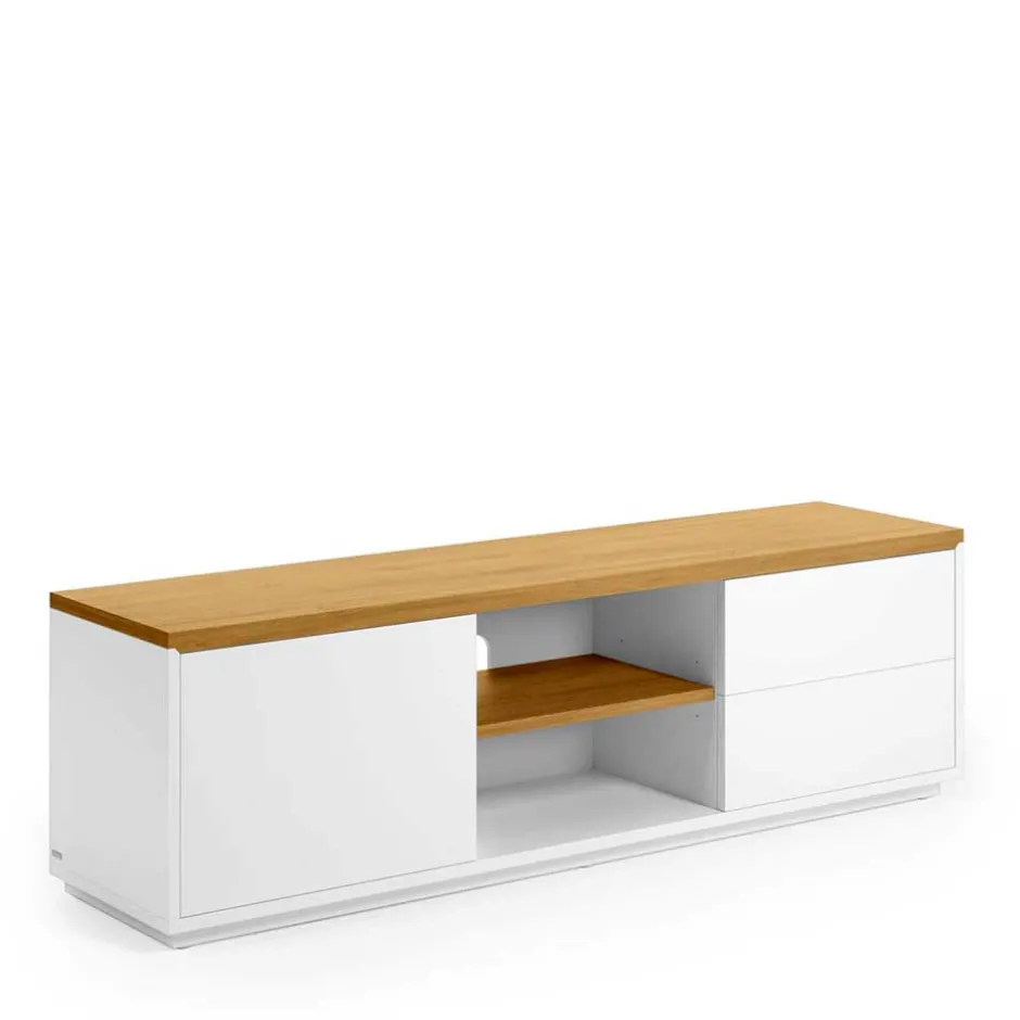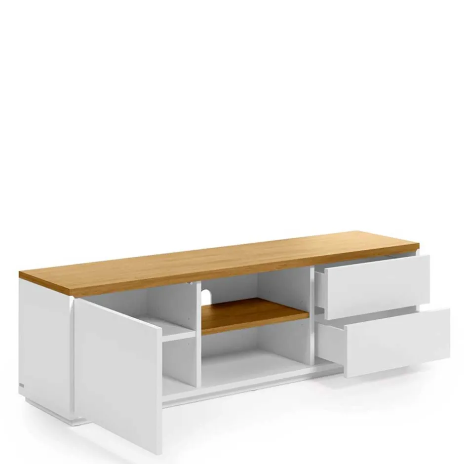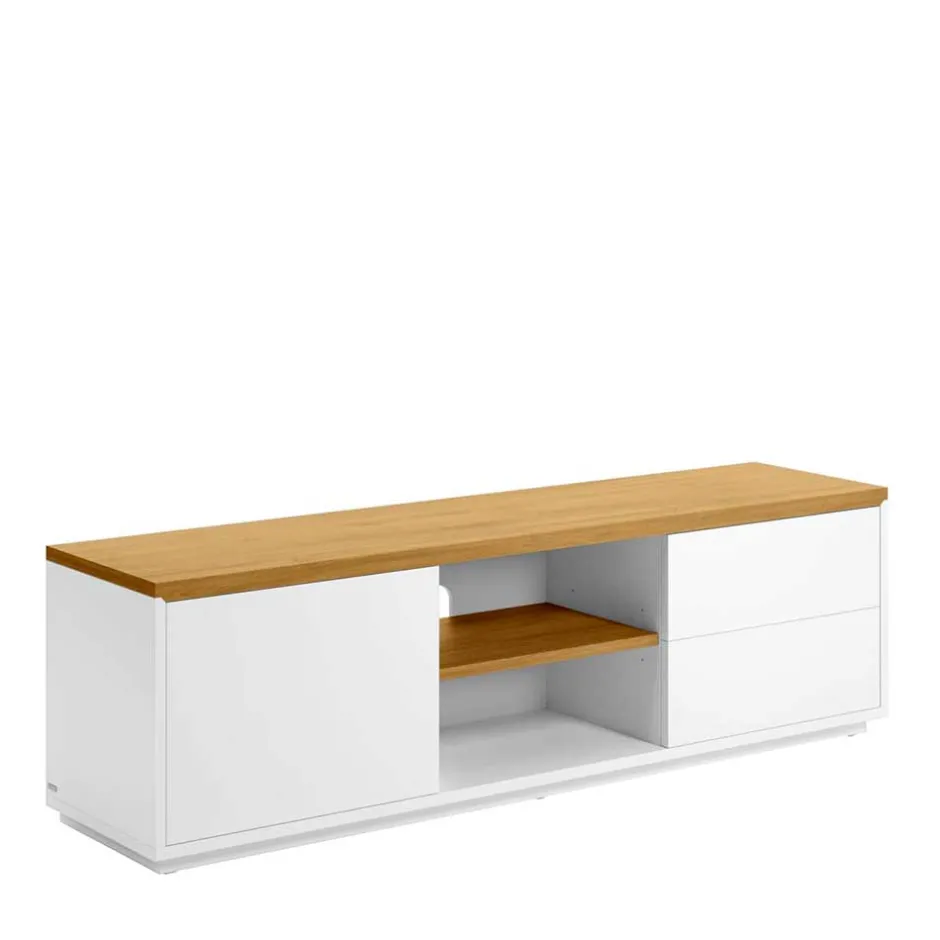 - Harmonisches TV-Board in Weiß und Eichefarben