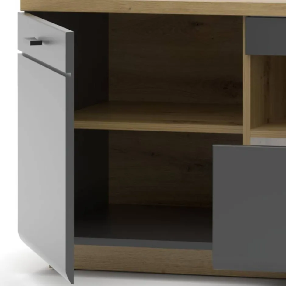 - Geräumiges TV-Lowboard in Dunkelgrau matt und Wildeichefarben
