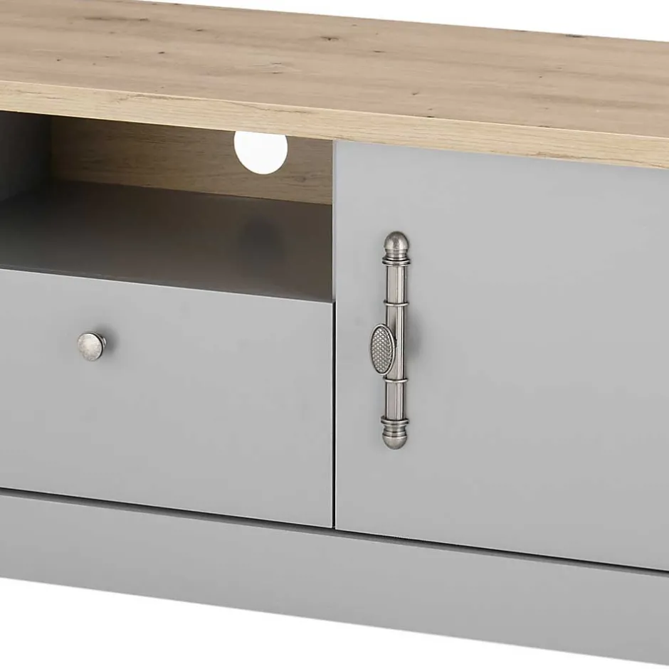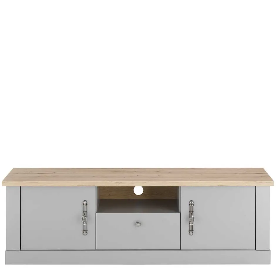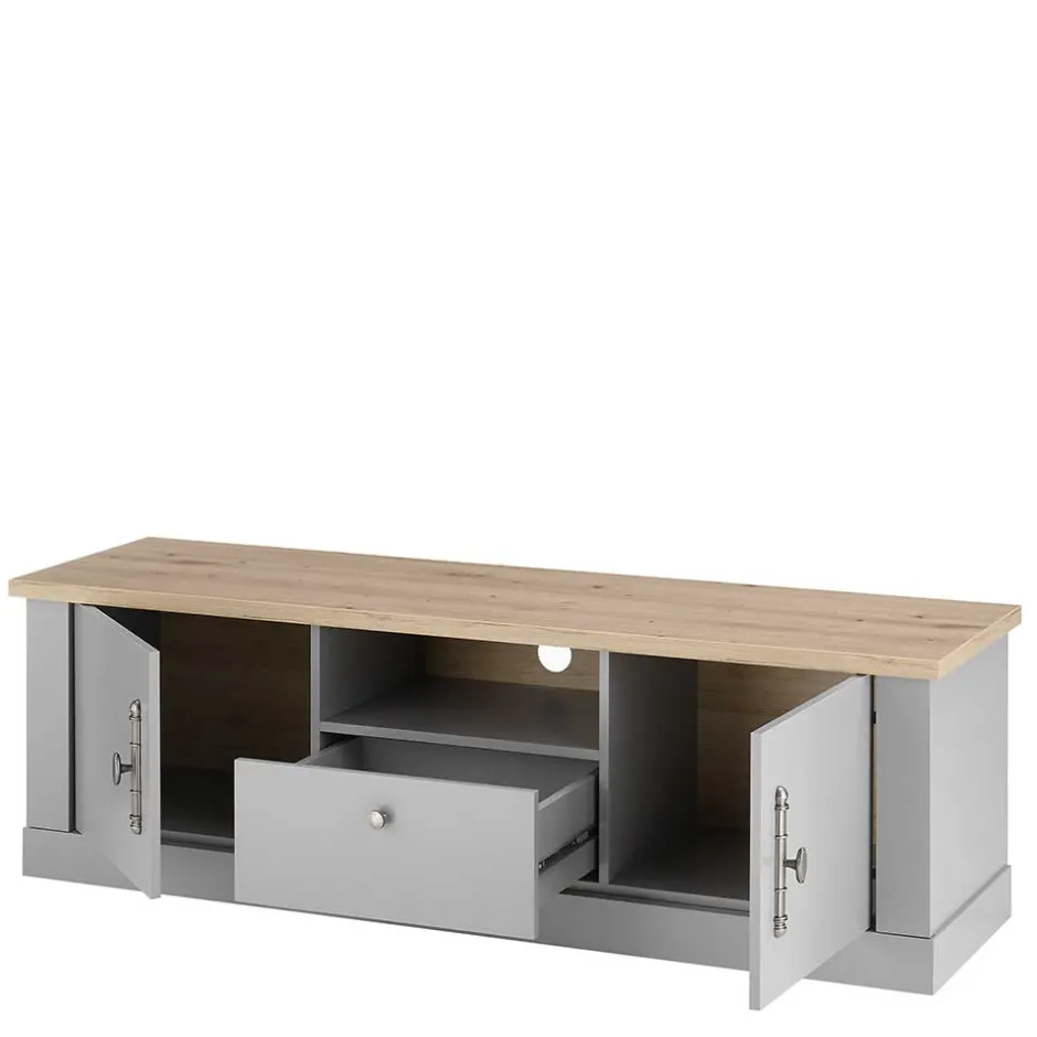 - Schickes TV-Board in Lichtgrau und Eichefarben