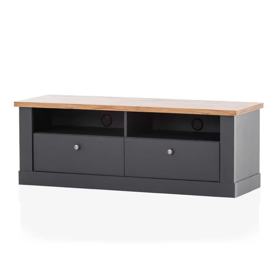 - Smartes TV-Lowboard in Anthrazit und Wildeichefarben