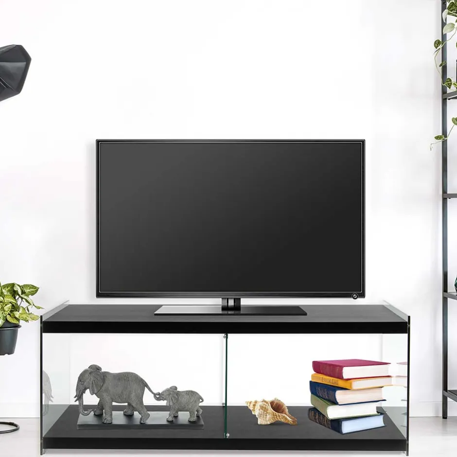 - Kompaktes TV-Board in Schwarz und Transparent