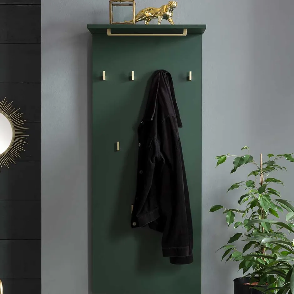 - Junges Garderobenpaneel in Dunkelgrün und Goldfarben