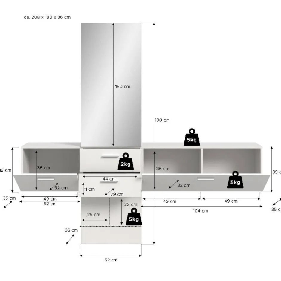 - 208 cm Breit, 190 cm Hoch, 36 cm Tief