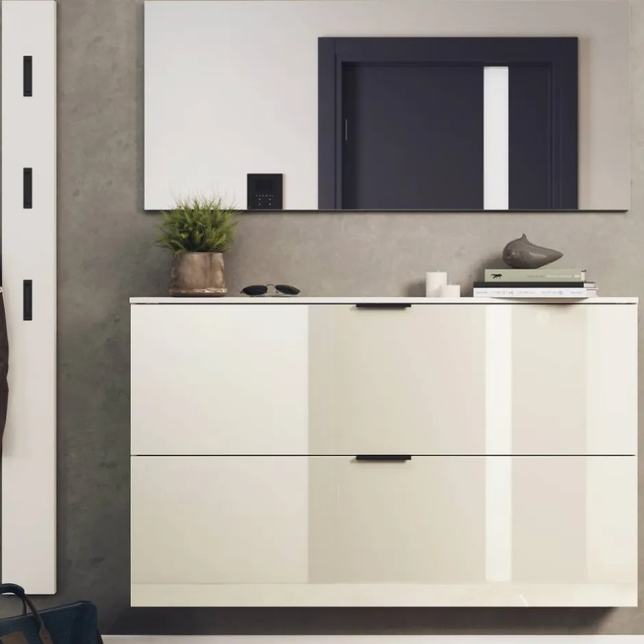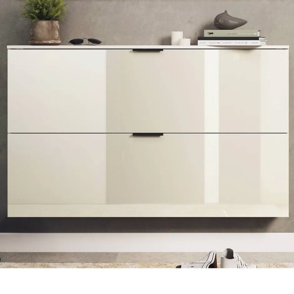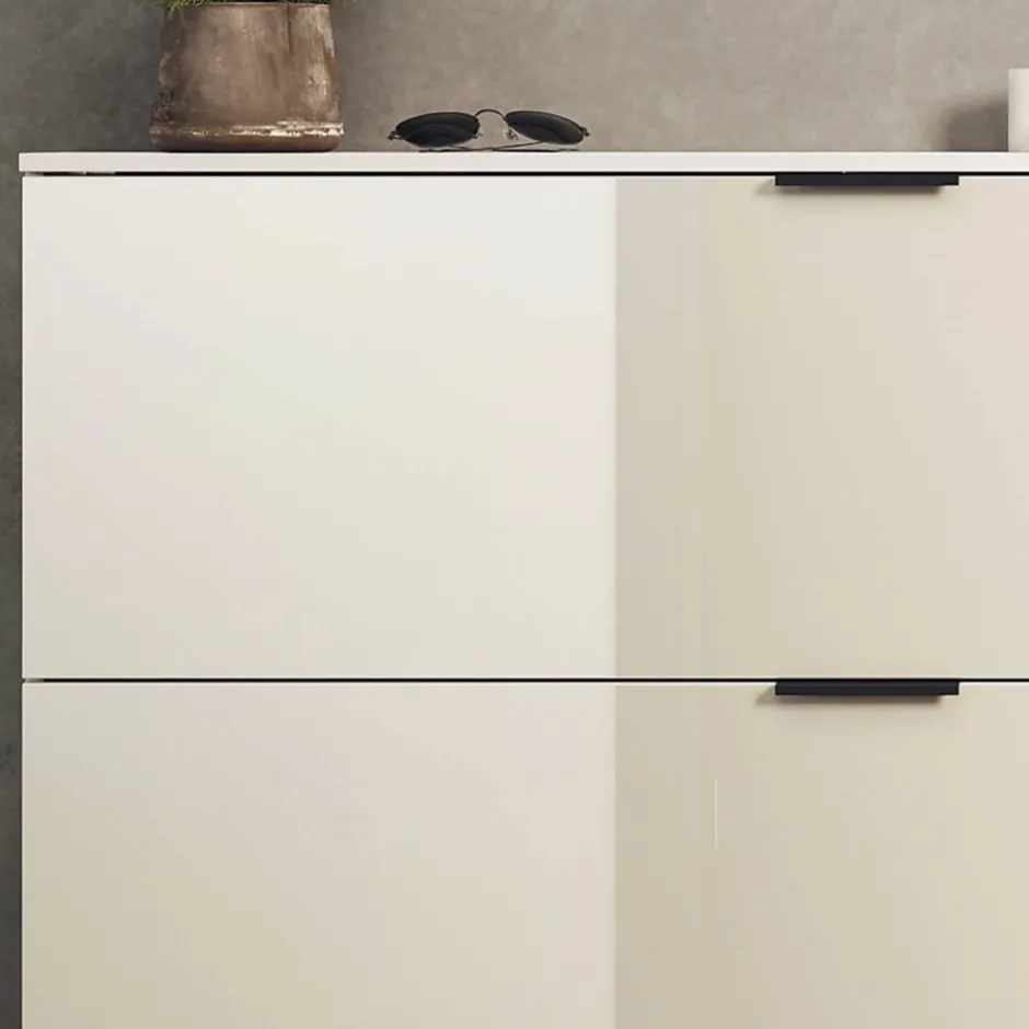 - Hinter jeder Klappe zwei Metall-Schuhkörbe, je nach Größe der Schuhe Platz für bis zu 12 Paar