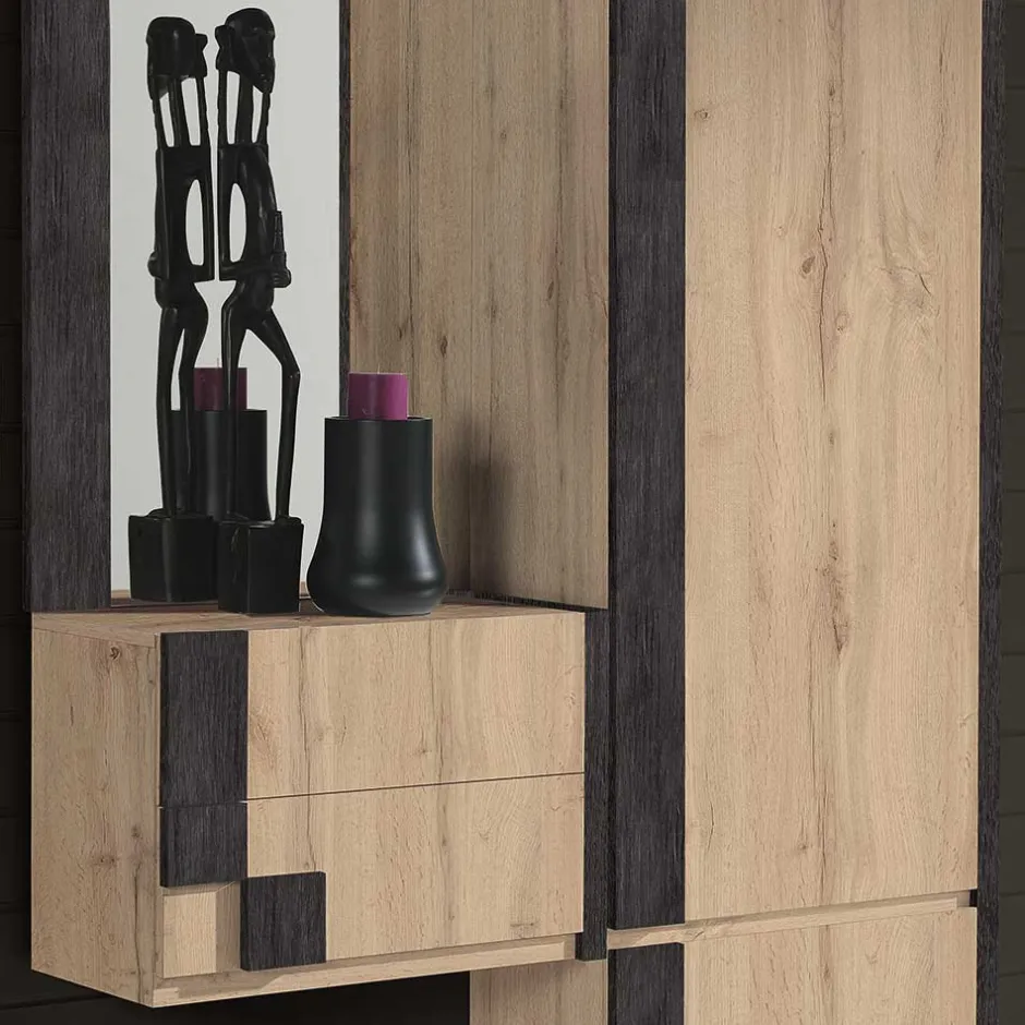 - Großzügige Dielenmöbel in Wildeichefarben und Schwarz-Grau