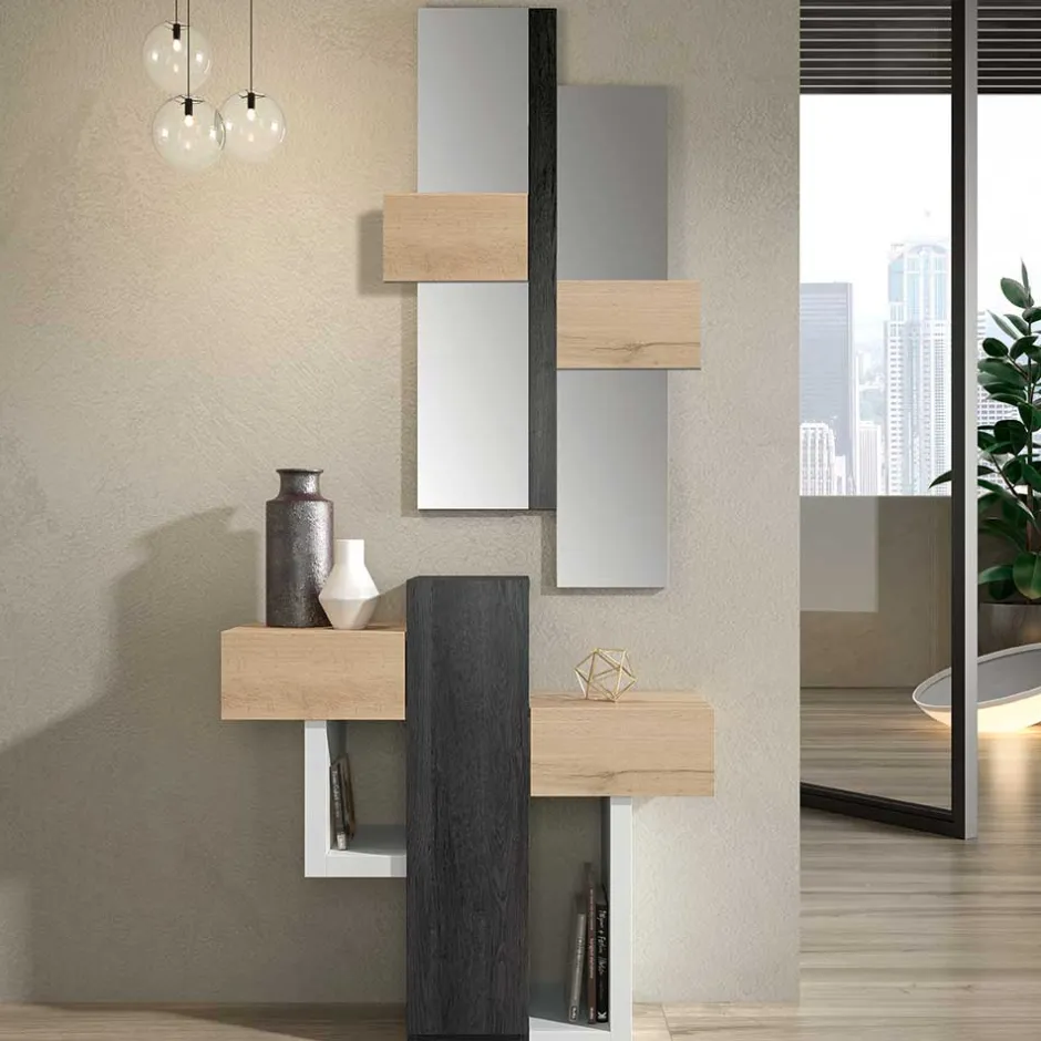 - Erstklassige Dielenmöbel in Weiß, Wildeichefarben und Schwarz-Grau