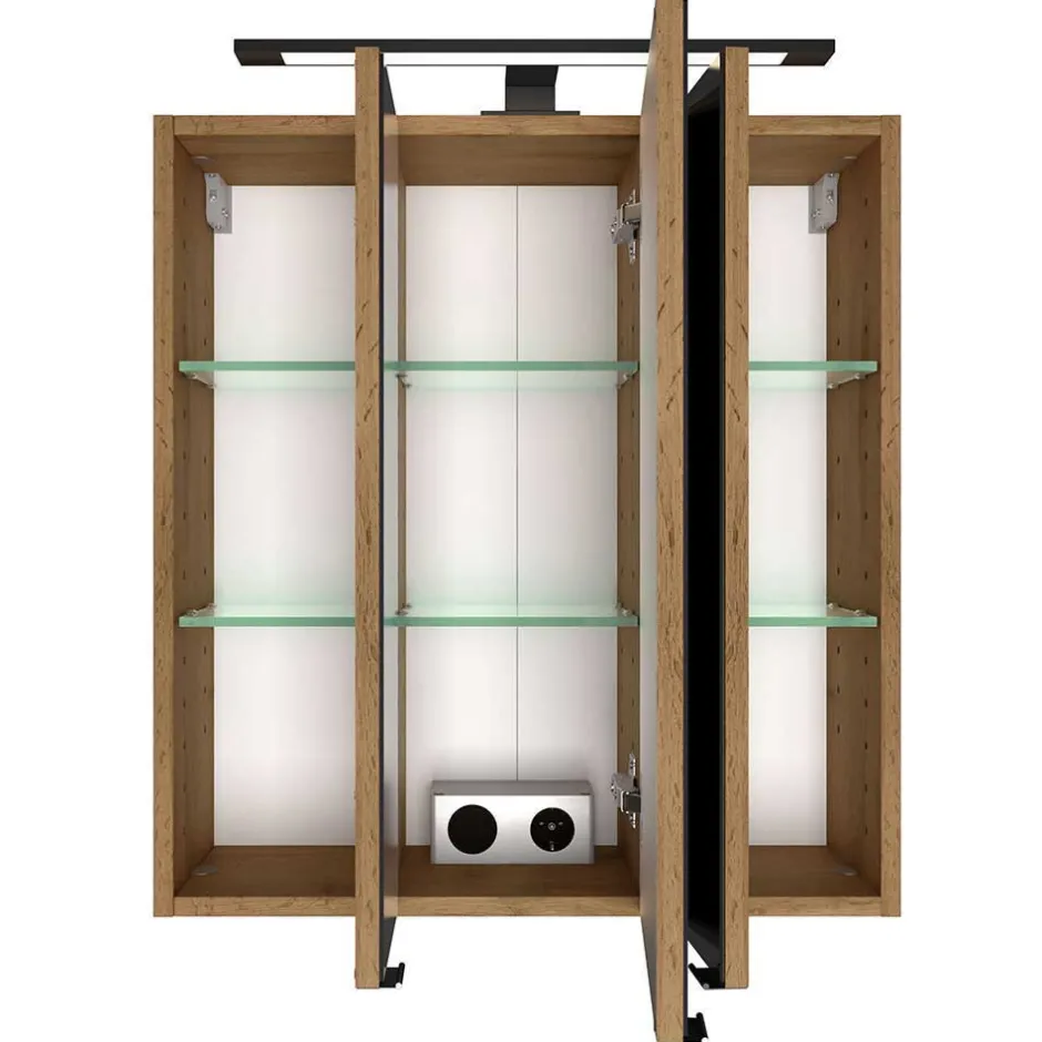 - Korpus in Holzoptik Wildeiche melaminbeschichtet, Rückwand weiß
