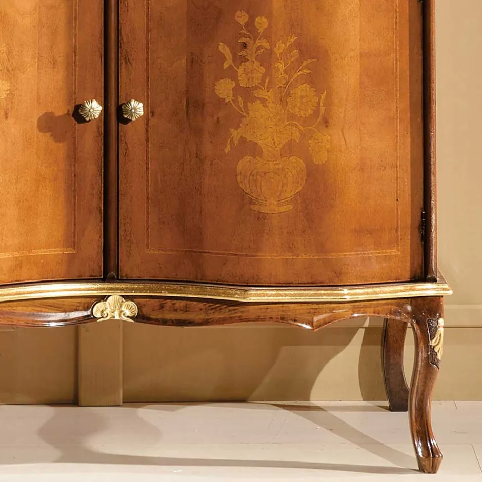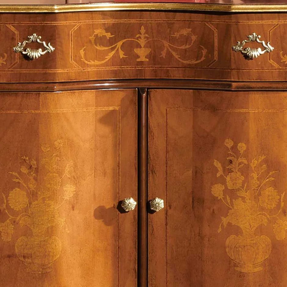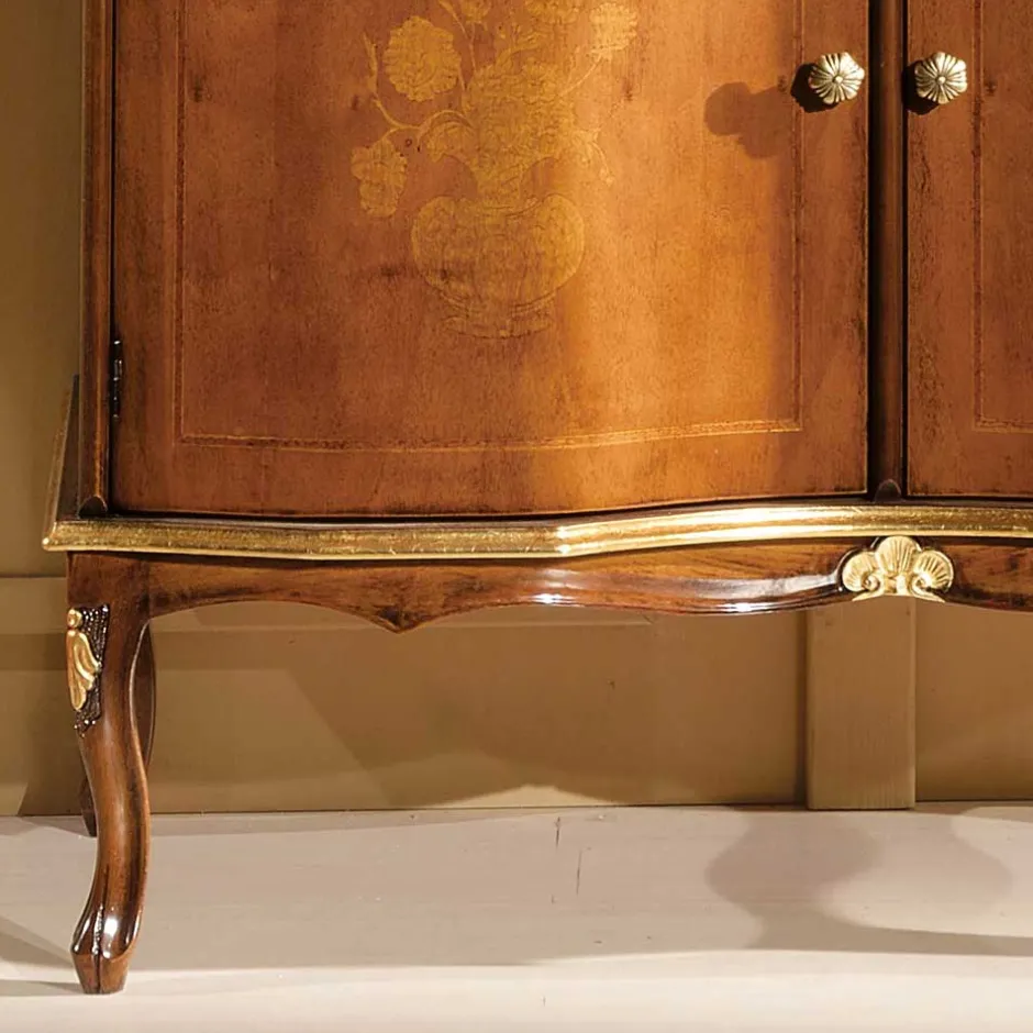 - Zwei Drehtüren, kunstvoll gestaltet mit floralen Einlegearbeiten aus Pappelholz