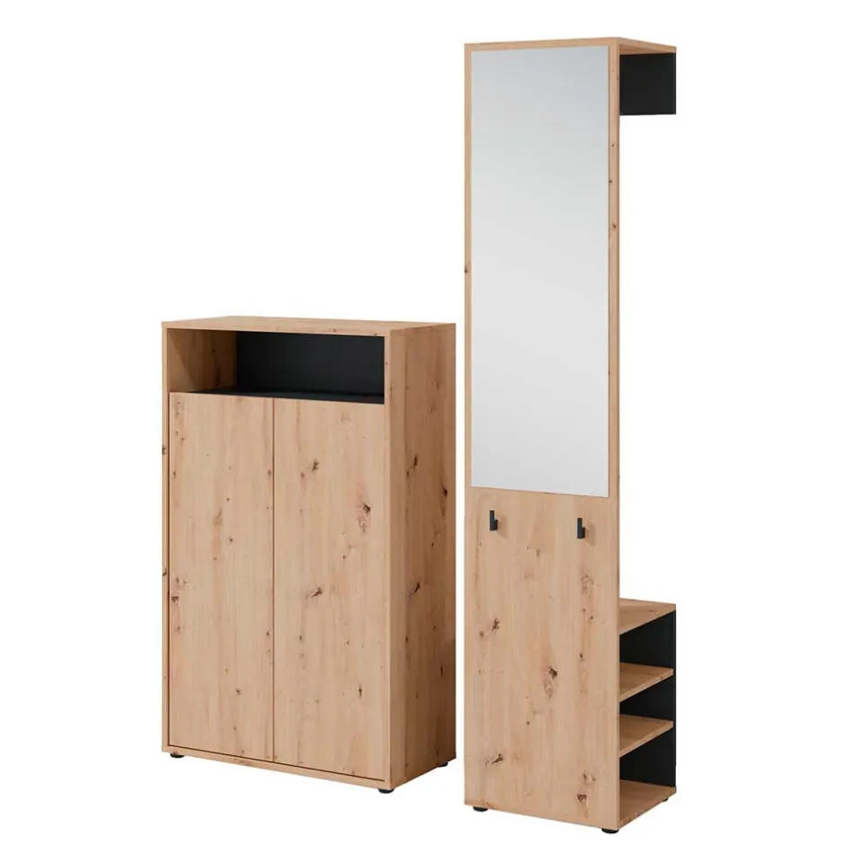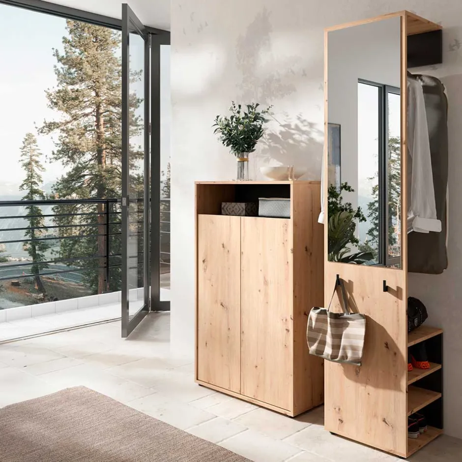 - Kompakte Garderobenmöbel in Wildeichefarben und Schwarz