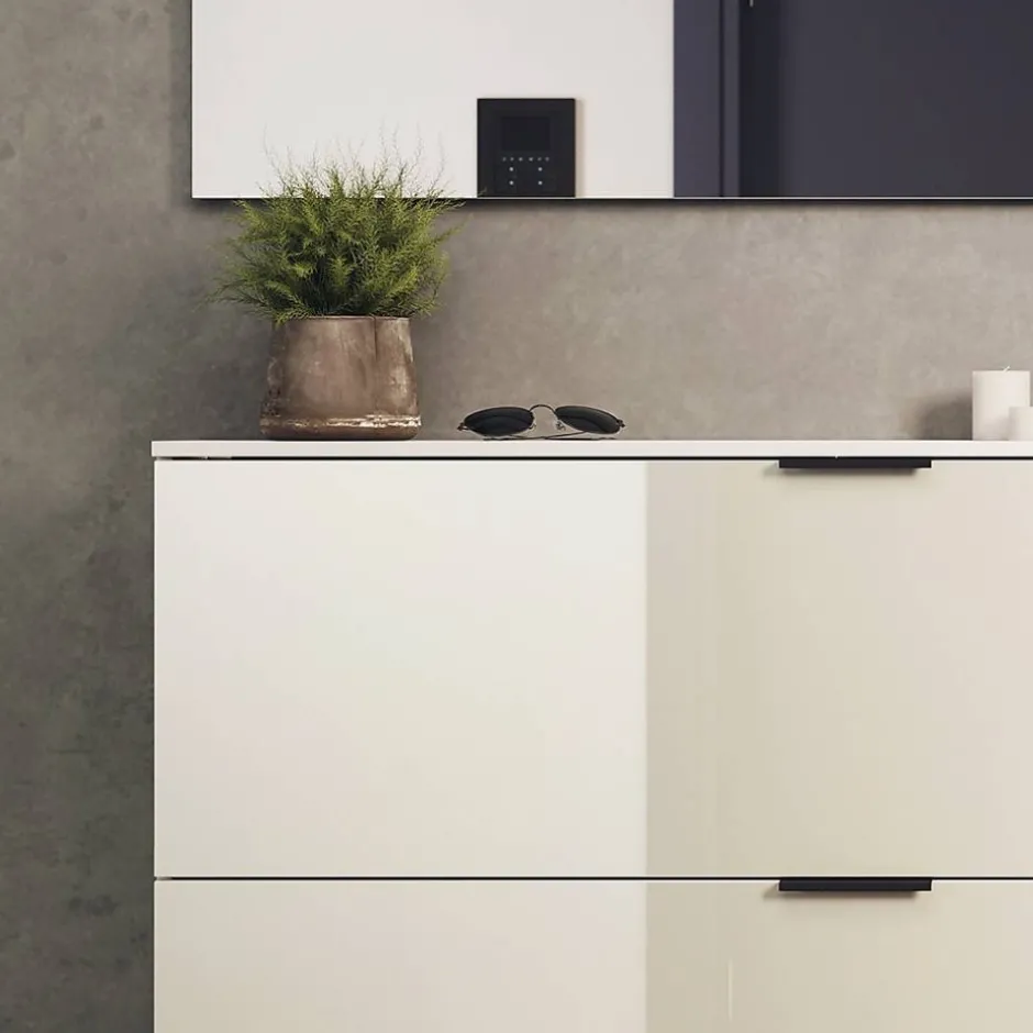 - Hinter jeder Klappe zwei Metall-Gitterkörbe, je nach Schuhgröße Platz für bis zu 12 Paar