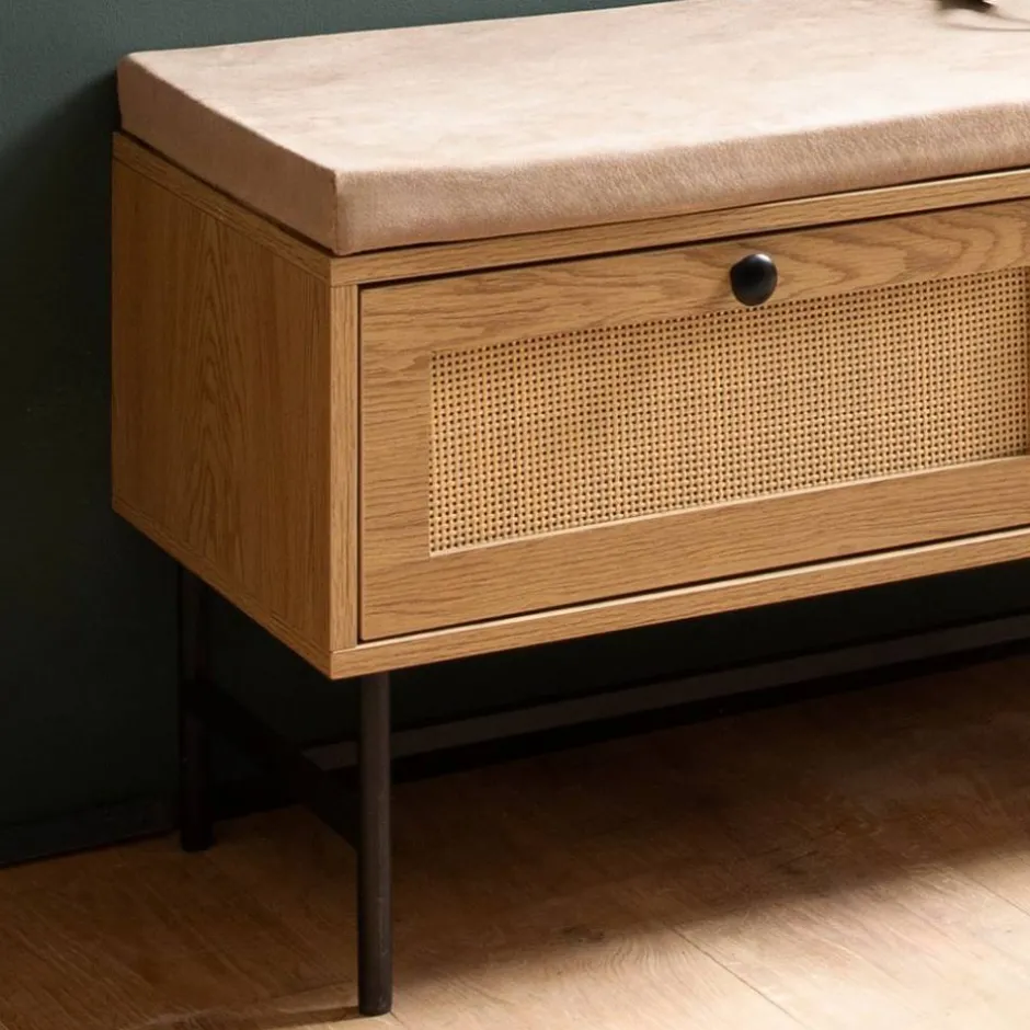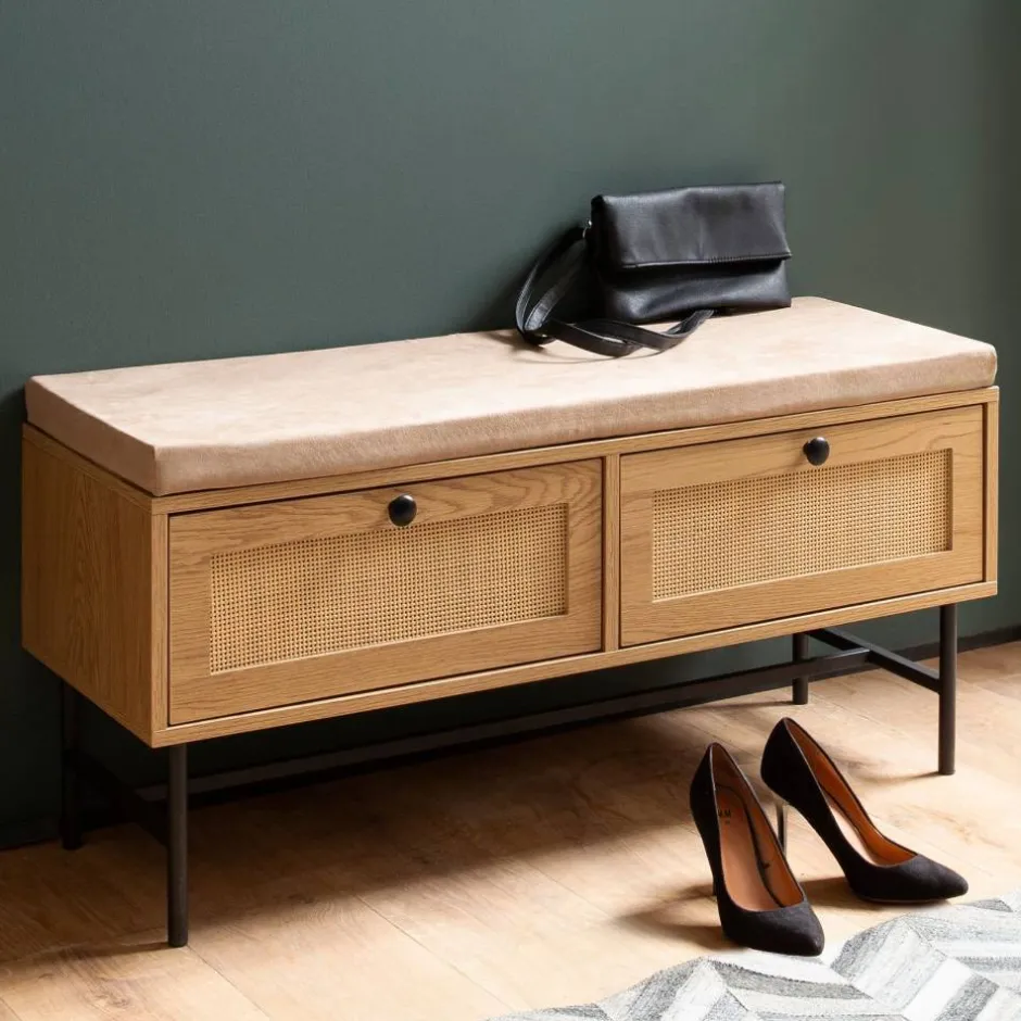 - Ansprechende Garderobenbank in Eichefarben, Beige und Schwarz