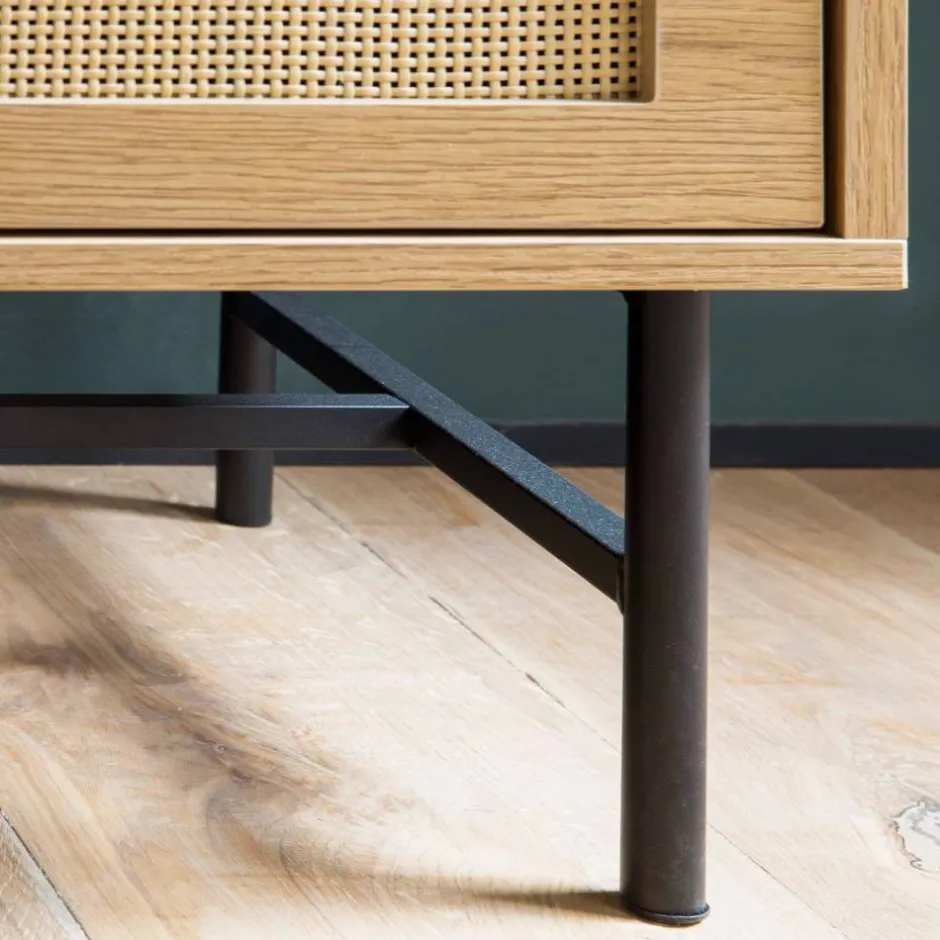 - Aus Spanplatte, Kunstrattan und Metall hergestellt