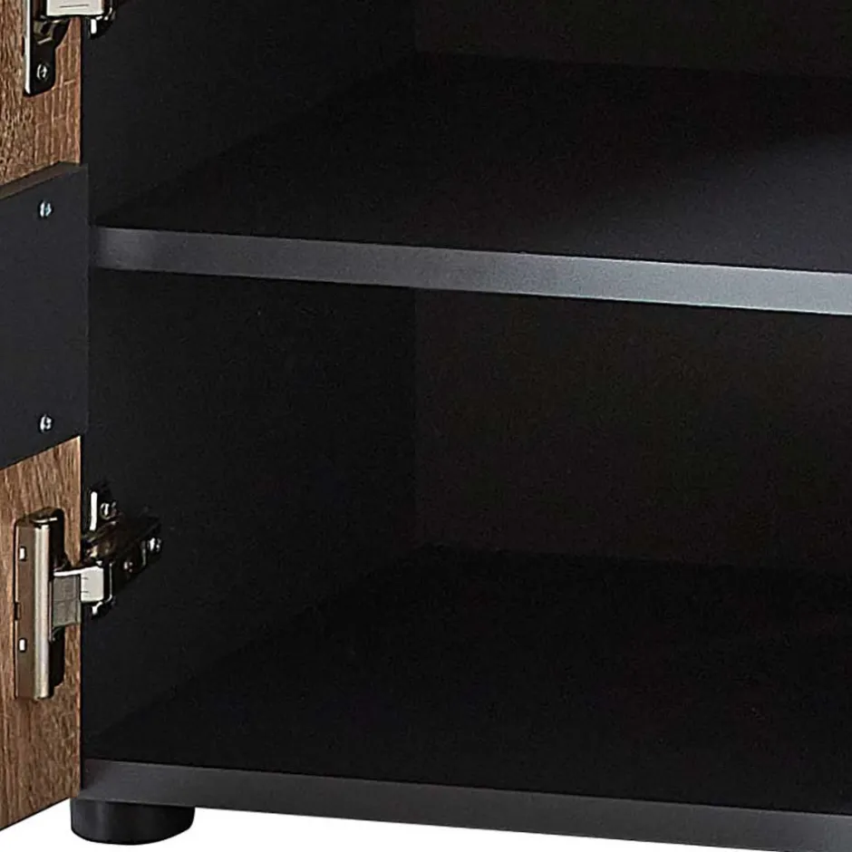 - Front foliert in Holzoptik Wildeiche, Korpus, sowie Absetzungen und Innendekor in Dunkelgrau