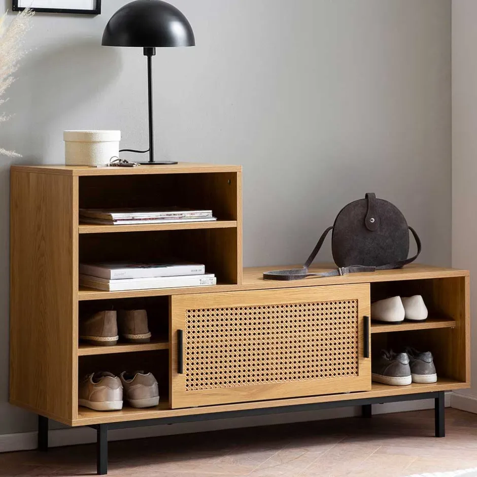 - Bietet mit zwei Ablagen und zwei verstellbaren Einlegeböden genügend Platz für Schuhe oder Taschen