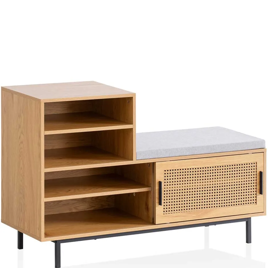 - Schicke Garderobenbank in Eichefarben und Schwarz im angesagten Skandi-Stil