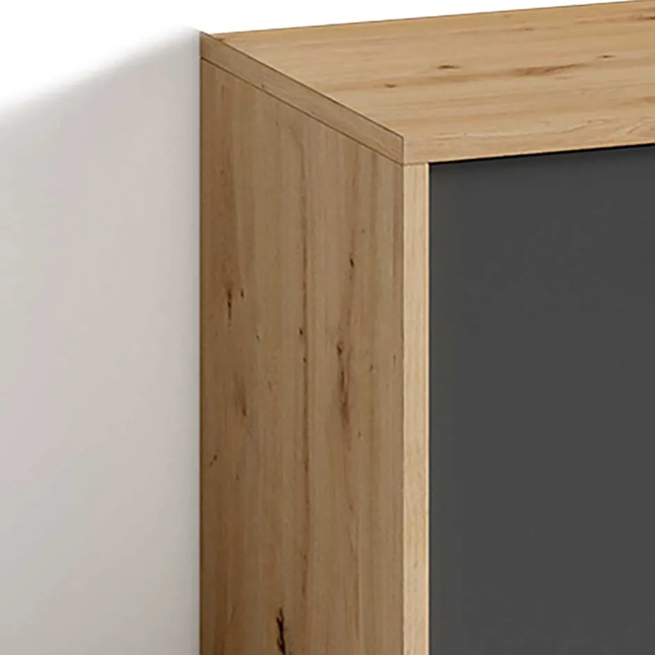 - Strapazierfähige Oberfläche mit Melaminbeschichtung in Holzoptik und Anthrazit