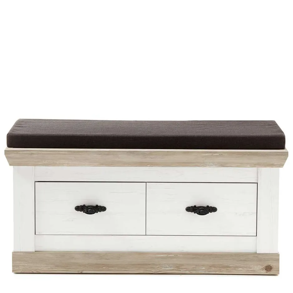 - Modische Garderobenbank in Weiß und Pinie verwittert
