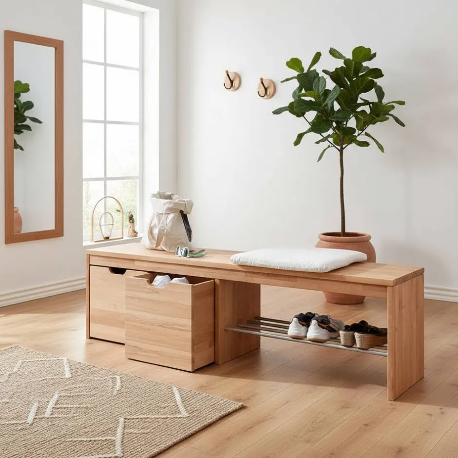- Modern und zeitlos präsentiert sich diese Sitzbank in Buchefarben