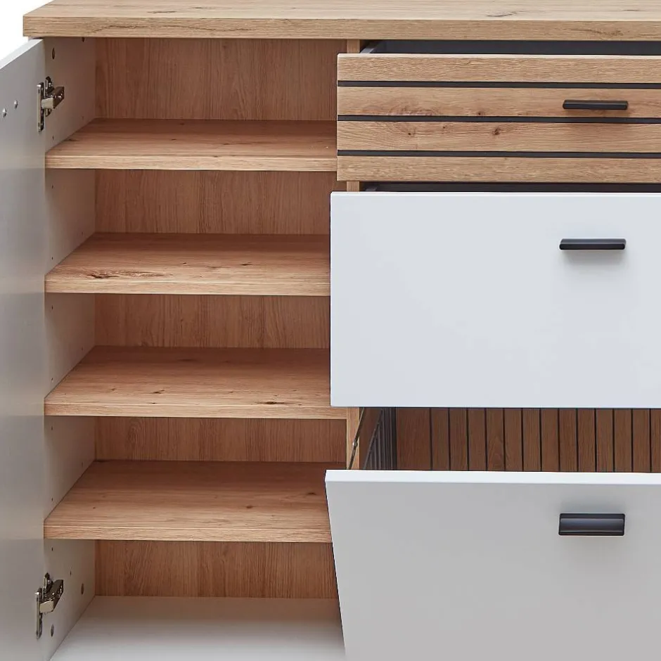 - Trendige Dielenmöbel in Weiß, Weiß matt und Wildeichefarben