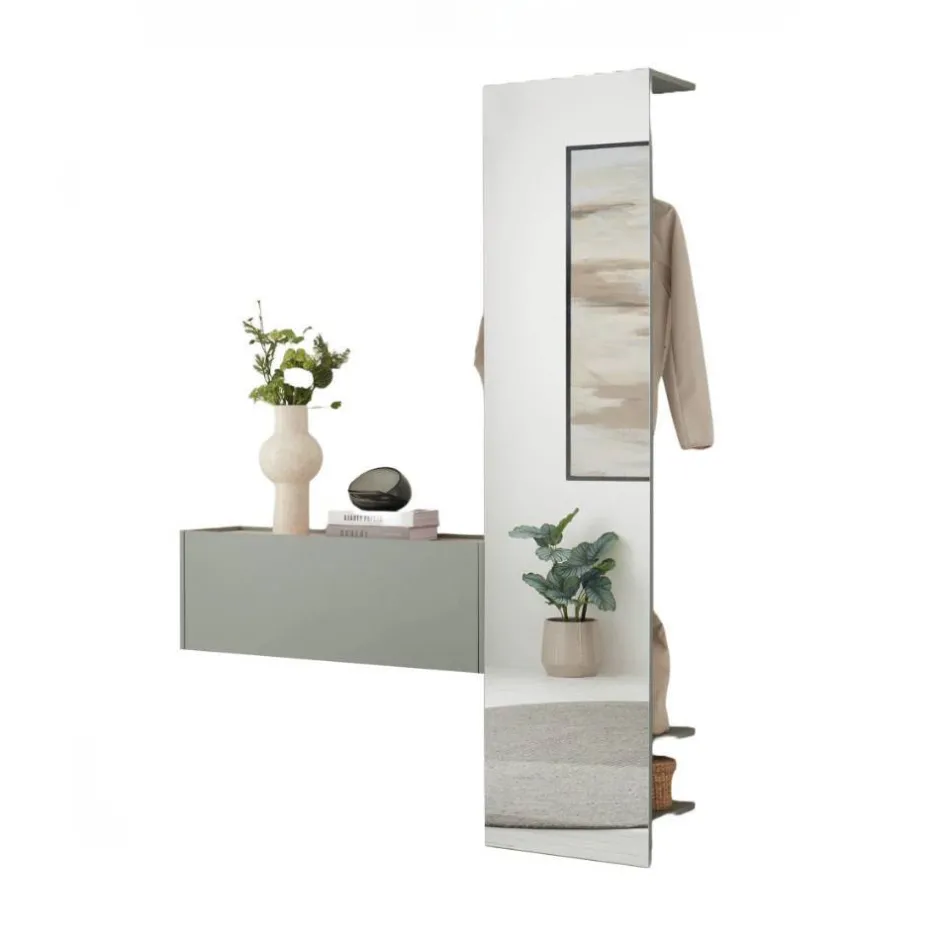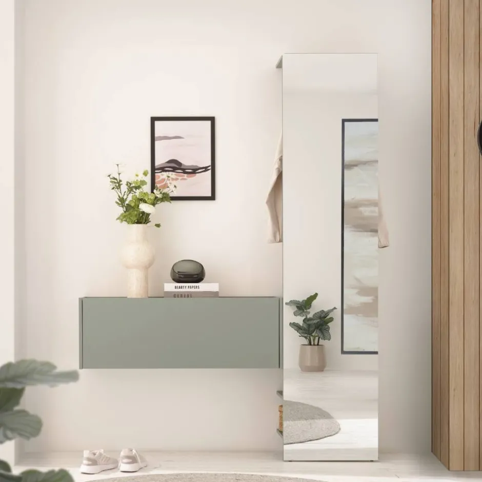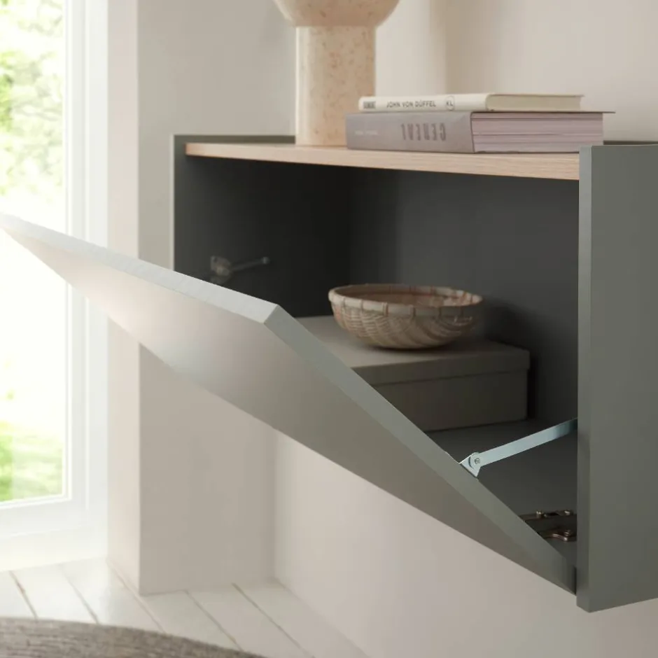 - Trendige Garderobenmöbel in Graugrün und Eichefarben